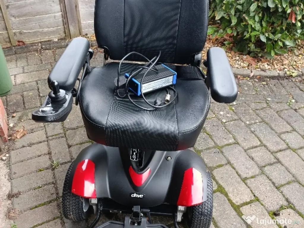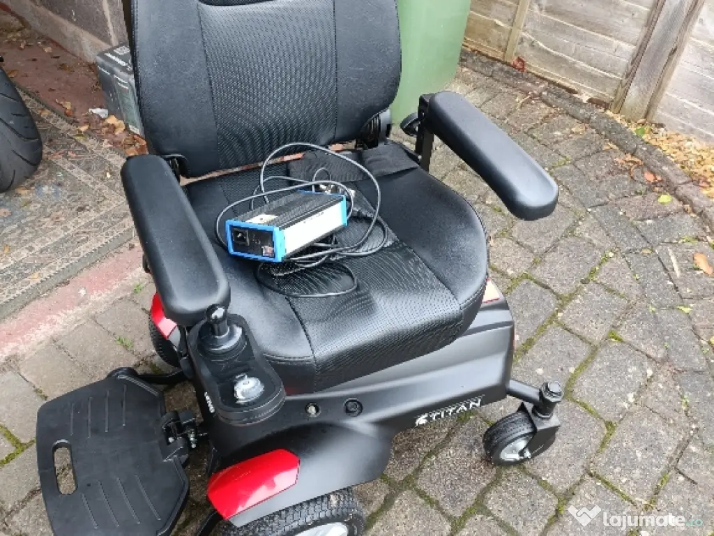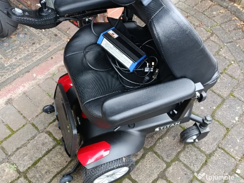 Carucior Electric Titan cu scaun din piele si suport de cap Maneta pentru operare se poate schimba din stanga in dreapta. Suporta greutate pana la 110kg, 2 motoare individuale pentru a putea face miscare de rotatie 360°. Viteza de deplasare pana la 8km/h, cu reductor de viteza maxima Sunet avertizare/claxon Distanta utilizare 12-20km Centura de siguranta. Schimbare mod electric/manual Foarte putin utilizat. Nu se pliaza Se incarca la priza si vine la pachet cu incarcatorul lui. *predarea se face personal *nu accept schimburi