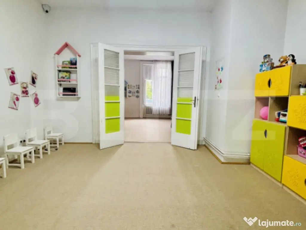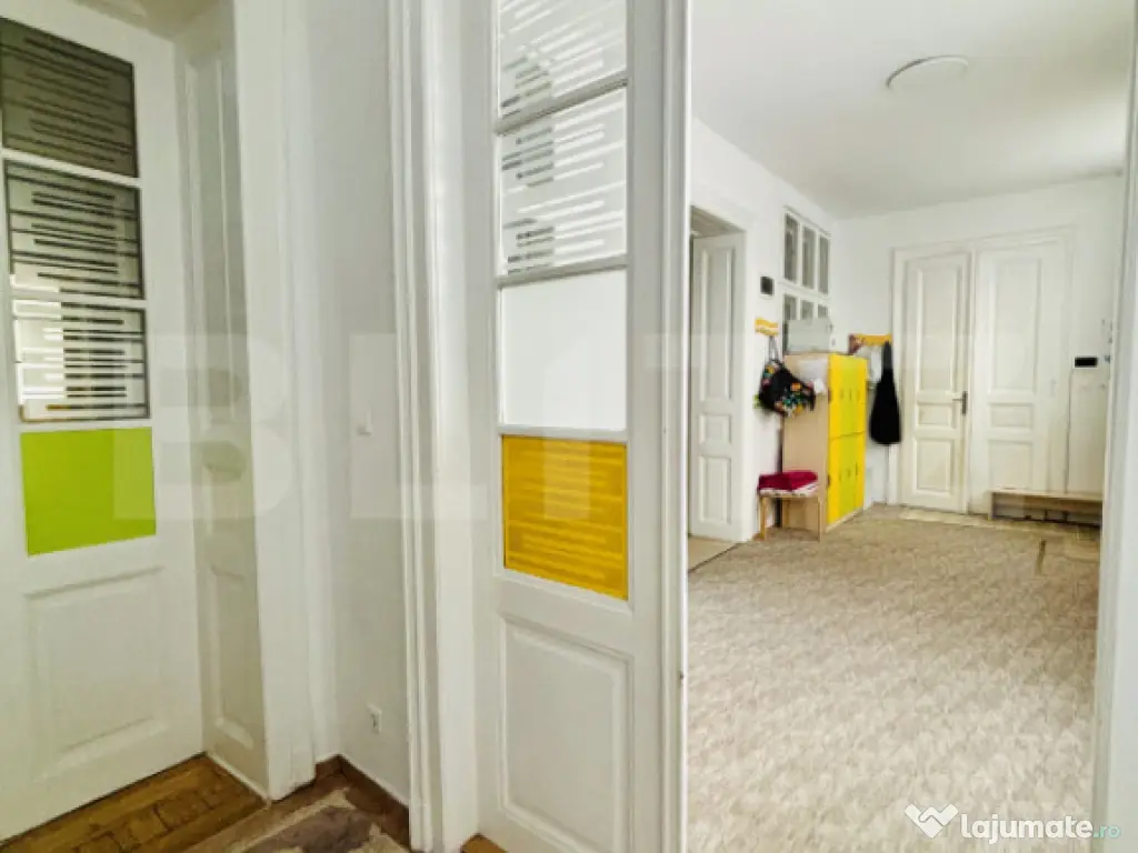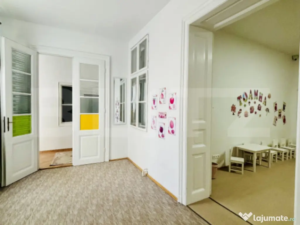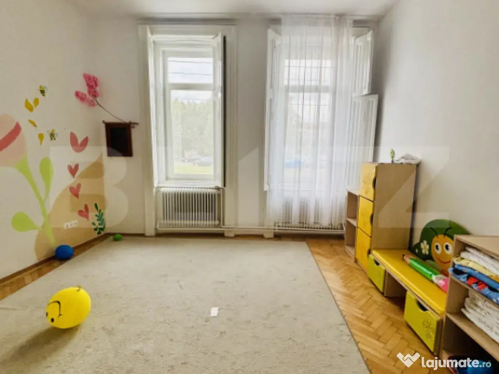 Blitz vă prezintă o proprietate deosebită situată într-una dintre cele mai liniștite și bine cotate zone ale Timișoarei – cartierul Lunei. Cu o suprafață utilă de 170 mp și un teren generos de 411 mp, această casă impresionează prin compartimentare, luminozitate și detalii arhitecturale păstrate cu grijă. Parterul găzduiește 4 camere spațioase, cu tavane înalte și ferestre înalte, care oferă un ambient aerisit și luminos. Finisajele autentice, precum ușile din lemn recondiționate și parchetul din lemn masiv de stejar și fag, adaugă un farmec aparte fiecărei încăperi. Tot la parter se regăsesc o baie și o chicinetă, complet funcțională. La etaj, casa oferă 6 dormitoare și o a doua baie, spațiul fiind versatil și ideal pentru familii numeroase sau pentru amenajarea unor zone funcționale precum birouri, sală de fitness sau spațiu de joacă. Compartimentarea actuală poate fi adaptată cu ușurință în funcție de nevoi. Demisolul este generos, încălzit și are intrare separată, oferind multiple posibilități de utilizare – fie ca spațiu de depozitare, fie ca zonă de activitate independentă. Proprietatea este dotată cu două centrale termice pe gaz pentru un confort termic eficient și are instalația electrică schimbată. Această casă poate reprezenta alegerea perfectă atât pentru locuință familială, cât și pentru sediul unei firme, clinică medicală, cabinet notarial sau alte activități profesionale care necesită spațiu generos și compartimentare flexibilă. ✅ 10 camere ✅ Demisol cu intrare separată ✅ Două centrale termice ✅ Instalație electrică nouă ✅ Parchet și tâmplărie din lemn masiv Nu ratați ocazia de a descoperi potențialul acestei proprietăți cu adevărat unice! Cod ofertă / ID BLITZ: P154586 Id intern: P154586 Număr niveluri imobil: 1 Număr Băi: 3 Curent Apă Canalizare Gaz