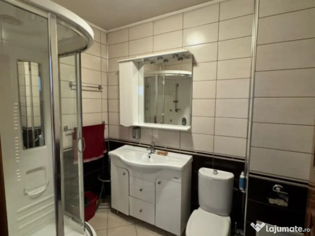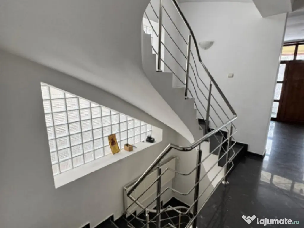 Blitz va propune spre vanzare o proprietate impunatoare, construita in 2005 din caramida rosie, situata intr-o zona centrala. Casa are 12 camere si este structurata pe demisol, parter si etaj, cu o amprenta la sol de 171 mp (19x9 m). Demisolul este complet realizat din beton si fier, include garaj pentru doua masini cu usa glisanta, camera tehnica, baie si debara. Parterul cuprinde hol, dressing, baie, living, bucatarie si terasa acoperita, iar etajul dispune de 3 camere, 2 bai, dressing si terasa. Proprietatea este complet mobilata si utilata, dispune de centrala Ariston Class On, termopane Q-Fort si semineu pe lemne functional. Curtea din fata masoara 60 mp, iar curtea din spate are 90 mp, fiind protejata cu camere video si porti automate. Fundatia este bine izolata, cu hidroizolatie, iar casa ofera confort termic si siguranta. Vecinatatea este linistita, iar imobilul este ideal pentru locuire moderna, familii numeroase sau investitie. Cod ofertă / ID BLITZ: P163955 Id intern: P163955 Număr niveluri imobil: 1 Număr Băi: 3 Nr. locuri parcare: 1 Curent Apă Canalizare Gaz Sistem irigaţie Climă
