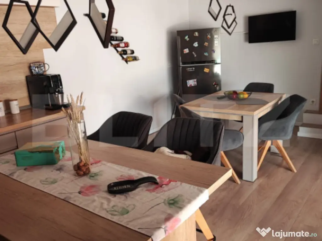 Vă propunem spre vânzare o casă modernă, economică și complet utilată, situată pe strada Balta Blondă, într-o zonă liniștită și ușor accesibilă din Satu Mare. Detalii generale • Suprafață utilă: 150 mp • Teren: 1.200 mp • Camere: 5 • Băi: 2 • Bucătării: 2, complet utilate • Compartimentare: două unități locative cu intrări separate – ideal pentru două familii sau pentru locuință și birou Dotări și beneficii • Încălzire în pardoseală, cu centrală pe gaz sau pe peleți, controlabilă prin termostat wireless sau aplicație pe telefon • Apă caldă disponibilă pe gaz, curent sau peleți • Panouri fotovoltaice de 5,7 kW, cu eficiență energetică ridicată și costuri de întreținere minime • Aer condiționat smart, cu control manual sau din aplicație • Mobilier și electrocasnice premium, inclusiv două mașini de spălat și un uscător de haine • Poartă automatizată pentru acces facil • Curte pavată și amenajată, cu zonă de grătar și grădină • Terasă generoasă de 40 mp, perfectă pentru relaxare • Trei anexe de depozitare și puț forat pentru întreținerea spațiilor verzi • Cameră tehnică de 20 mp Alte informații utile Proprietatea este construită din cărămidă plină și se vinde complet mobilată și utilată, cu mobilier și electrocasnice de înaltă calitate. Este o locuință ideală pentru cei care doresc să se mute imediat, fără investiții suplimentare. Casa este gândită practic și flexibil, potrivită pentru o familie numeroasă sau pentru două familii, datorită celor două intrări independente. Încălzirea poate fi realizată atât pe peleți, cât și pe gaz, cu termostat inteligent ce permite controlul temperaturii de la distanță. Spațiile auxiliare oferă un plus de confort: cameră tehnică de 20 mp, trei anexe de depozitare, carport, puț forat, poartă automatizată și zonă amenajată pentru relaxare. Apa caldă poate fi furnizată pe gaz, curent sau peleți, iar proprietatea dispune de toate utilitățile: apă, gaz, canalizare și curent electric. Accesul este facil, cu stradă asfaltată și legătură rapidă către principalele zone ale orașului. Zona este liniștită, aproape de centură, ideală pentru navetă sau acces către punctele comerciale și instituționale. Avantaje principale • Complet mobilată și utilată • Eficiență energetică ridicată • Costuri minime de întreținere • Comision 0% pentru cumpărător • Proprietate pregătită pentru mutare imediată Această casă reprezintă combinația perfectă între confort, eficiență și design modern. Pentru detalii suplimentare sau programarea unei vizionări, vă invităm să ne contactați. Cod ofertă / ID BLITZ: P150156 Id intern: P150156 Număr Băi: 2 Curent Apă Canalizare Gaz Climă