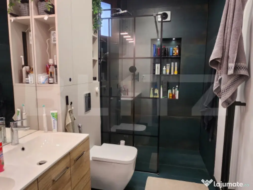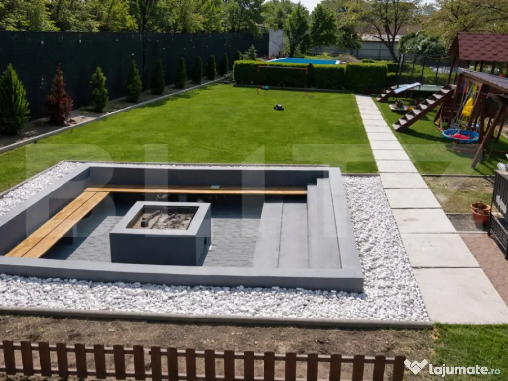 Blitz vă propune spre vânzare o proprietate deosebită, situată într-o zonă cu acces facil către toate punctele de interes urban (transport public, supermarketuri, școli, farmacii, bănci), oferind un nivel ridicat de confort și funcționalitate. Imobilul principal are o suprafață utilă de 125 mp și este amplasat pe un teren de 960 mp, cu deschidere stradală de 11,5 ml. Compartimentare: Hol de acces Bucătărie modernă cu cămară Living spațios cu șemineu pe lemne 3 dormitoare 2 băi Beci/pivniță de 23 mp Pod generos, cu posibilitate de mansardare Dotări și finisaje premium: Se vinde complet mobilată și utilată Bucătărie echipată cu electrocasnice Samsung, Zanussi și Bosch Mobilier MDF vopsit, design modern Încălzire în pardoseală în toată casa (inclusiv băi), cu 4 termostate Centrală termică Ariston pe gaz Izolație exterioară cu polistiren de 10 cm Izolație pod cu vată bazaltică de 10 cm Pardoseli LVT și gresie în băi Sistem de iluminat smart cu control vocal Perdele electrice cu telecomandă și aplicație Casă complet integrată Google Home Sisteme de siguranță și automatizare: Interfon inteligent cu recunoaștere facială Acces prin cartelă și aplicație mobilă Sistem de supraveghere video (6 camere, NVR) Sistem de alarmă Hikvision AX Pro Senzori de mișcare și fum Ventilatoare cu senzor de umiditate în băi Automatizare sistem apă Anexă și spații auxiliare – 160 mp construiți, care includ: Garaj mare cu canal auto Atelier cu baie Spațiu de depozitare Magazie La etaj: apartament cu 2 camere, hol și baie (necesită renovare) Curte și zonă de relaxare: Terasă acoperită Firepit îngropat Piscină zidită de 18 mc Spațiu de joacă pentru copii Gazon cu sistem de irigație automatizat Utilități: Apă, gaz, curent monofazic și trifazic Internet prin fibră optică Cablu TV Potențial investițional: Datorită poziției, suprafeței terenului și deschiderii stradale, proprietatea este pretabilă și pentru dezvoltare imobiliară: construcție de apartamente, birouri, cabinete sau spații comerciale Cod ofertă / ID BLITZ: P164145 Id intern: P164145 Număr niveluri imobil: 1 Număr Băi: 2 Nr. locuri parcare: 5-10 Curent Apă Canalizare Gaz Sistem irigaţie Climă