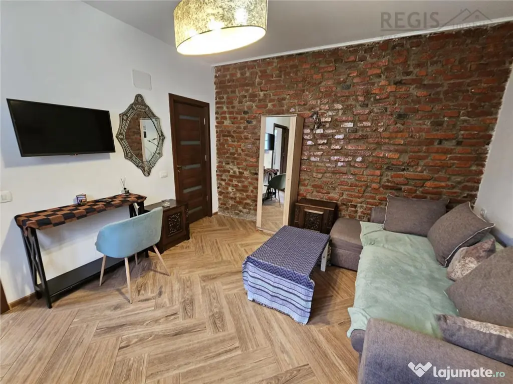 ID: 6445 Regis Imobiliare va propune spre vanzare casa cu curte individuala, cu 2 apartamente moderne, separate, zona AFI Mall Brasov. Locatie excelenta, pe o strada linistita, in spatele AFI Mall, aproape de toate punctele de interes. Casa este compusa din 2 apartamente complet separate, fiecare cu: - 2 camere decomandate, - bucatarie, - 2 bai moderne fiecare, recent renovate. Suprafata construita: 110 mp. Curte individuala: 260 mp ndash; nivelata si pietruita, cu spatiu pentru 4 masini, plus loc pentru gradina, foisor sau terasa. Detalii tehnice si renovari: - Casa a fost renovata recent. - Regletuita cu plasa rabitz, refacuta instalatia electrica si canalizarea. Acoperis nou deasupra unuia dintre apartamente; pentru cel de-al doilea se poate realiza mansardare si terasa. Centrala termica proprie. Ferestre termopan din lemn, usi metalice la intrare. Parchet in camere, gresie in restul spatiilor. Poarta superba din fier forjat. Dotari: Ambele apartamente sunt mobilate si utilate complet, pregatite pentru locuit sau inchiriere imediata. Unul dintre apartamente functioneaza deja in regim hotelier, generand venit stabil. Avantaje: Ideala pentru Airbnb sau investitie pentru diverse afaceri. Posibilitate de extindere prin mansardare (casa a fost consolidata pentru a se putea face mansardare si exista proiect). Se accepta vanzare prin credit. La tranzactionare se percepe un comision de 2% TVA. Număr Băi: 4 Posibilitate parcare: Da Nr. locuri parcare: 4 Curent Apă Canalizare Gaz