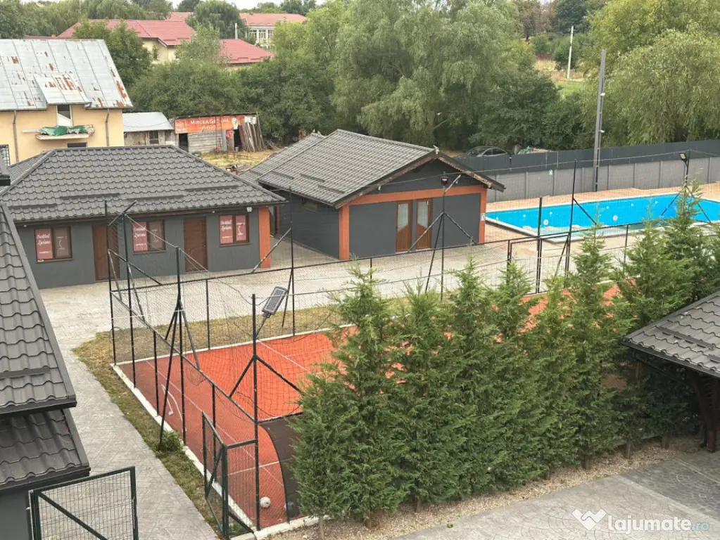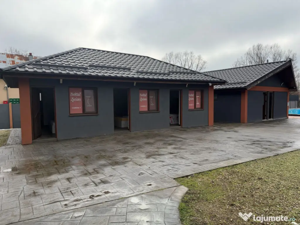 Blitz va propune spre vanzare o afacere la cheie compusa din: restaurant, bar, cu o suprafata de 280 mp, unde se pot organiza evenimente festive, o zona exceptionala de relaxare, piscina, teren de tenis, biliard, 3 cabane de cazare fiecare avand o suprafata de 24 mp, dotate cu bai proprii si aer conditionat, sistem de instalatie fotovoltaic de 17 KW(prosumator), avand un avantaj maxin la plata facturilor, terasa de vara, un teren generos de 2500 mp, beton amprentat, foisor. De asemenea, in incinta acestei proprietati superbe, se afla si casa visurilor tale, desfasurata astfel: parter , suprafata utila de 120 mp- 2 dormitoare, living, 1 baie, bucatarie si hol. La etaj -120 mp, avem 3 dormitoare, dintre care un dormitor matrimonial generos, 2 camere pentru depozitare, sau joaca copii, si o baie, 2 terase( 20 mp, respectiv 6 mp). Incalzirea se face atat prin termosemineu cat si centrala proprie pe lemn, carbuni si curent. Structura casei este facuta din caramida porotherm premium , stalpi de sustinere , beton armat si o placa de ciment de 20 cm . FOARTE IMPORTANT! Afacerea se poate vinde separat la pretul de 550000 euro. Se accepta si unele variante imobiliare si posibilitatea de a face plata in termen in 24 luni cu un precontrat la notar si rate la proprietar !!! Locatia se afla la 45 km distanta de Craiova, intr-o zona linistita si in plina dezvoltare. Pentru mai multe detalii, nu ezitati sa ne contactati pentru a programa o vizionare! Cod ofertă / ID BLITZ: P164347 Id intern: P164347 Număr niveluri imobil: 1 Număr Băi: 2 Nr. locuri parcare: 3 Curent Apă Canalizare Climă
