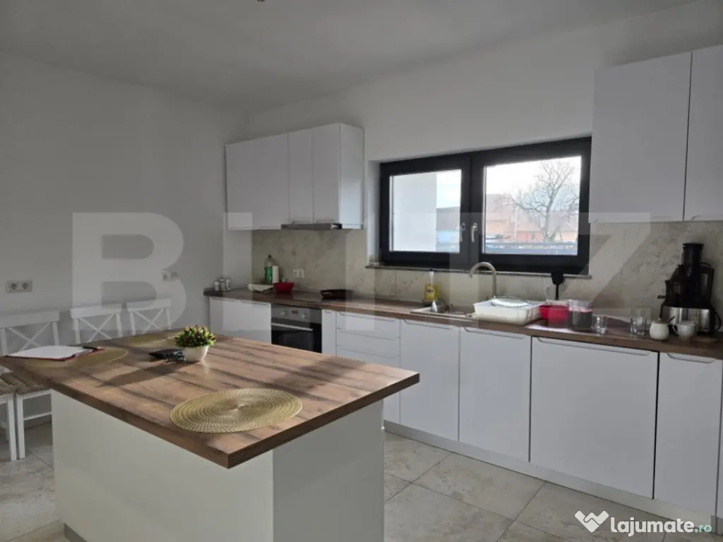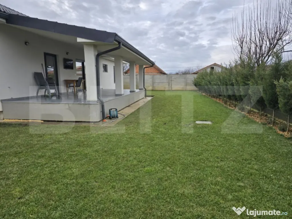 Anunț vânzare casă modernă, complet utilată și mobilată, 200 mp, teren generos, toate facilitățile incluse Vă prezentăm o locuință deosebită, bine compartimentată, cu o suprafață totală de 200 mp (160 mp utili), ideală pentru o familie care dorește confort și funcționalitate. Casa este situată într-o zonă liniștită, având toate dotările necesare pentru un trai modern. Descriere proprietate: 2 dormitoare spațioase – amenajate cu grijă, oferind confort maxim. Living generos – perfect pentru momentele de relaxare și socializare. Bucătărie mare, modern amenajată – dotată cu electrocasnice de ultimă generație, complet utilată. Garaj inclus, lipit de casă – acces ușor și practic. Spațiu tehnic dedicat – prevăzut pentru centrală, mașină de spălat, uscător de rufe. Cămară mare – pentru depozitarea alimentelor. Dressing spațios – organizare eficientă a garderobei. Hol generos – elegant și primitor. Terasă mare în spatele casei – loc perfect pentru relaxare și activități în aer liber. Curte amenajată: Gazon bine întreținut și copaci ornamentali care oferă un cadru natural și plăcut. Caracteristici tehnice și avantaje: Izolație dublă: atât la partea inferioară, cât și la tavan. Izolație exterioară realizată cu polistiren de 10 cm (densitate 100). Pod pe toată suprafața casei, oferind spațiu suplimentar de depozitare. Acoperiș din țiglă de beton – durabilitate și estetică. Pregătită pentru amplasarea de panouri fotovoltaice – investiție în energie verde. Această casă reprezintă combinația perfectă între design, confort și eficiență energetică. O alegere excelentă pentru cei care doresc să se bucure de o locuință complet echipată, gata să devină "acasă". Contactați-ne pentru mai multe detalii sau pentru a programa o vizionare! Cod ofertă / ID BLITZ: P137862 Id intern: P137862 Număr Băi: 1 Nr. locuri parcare: 2 Curent Apă Canalizare