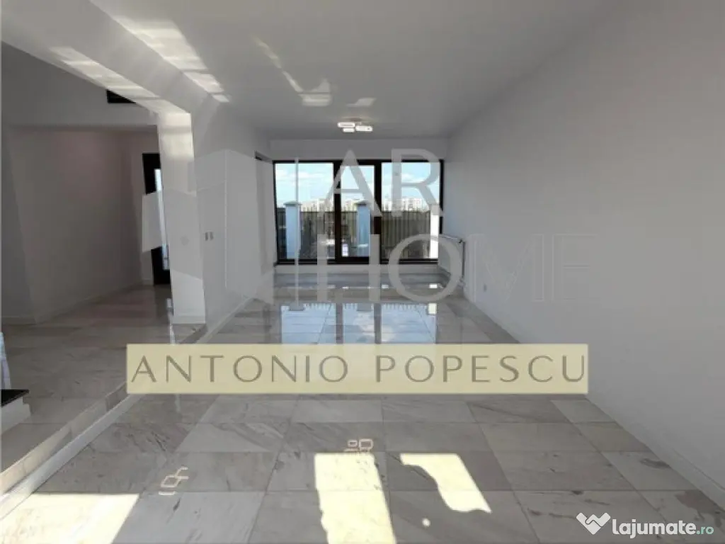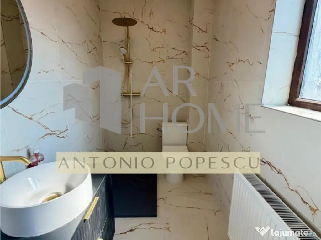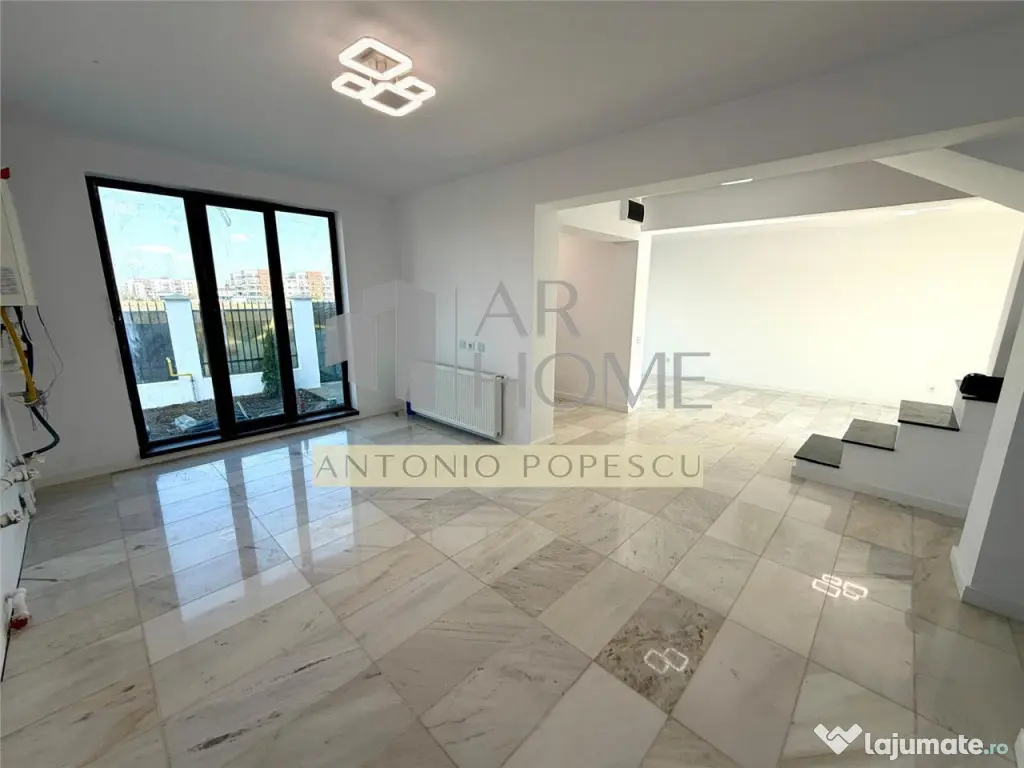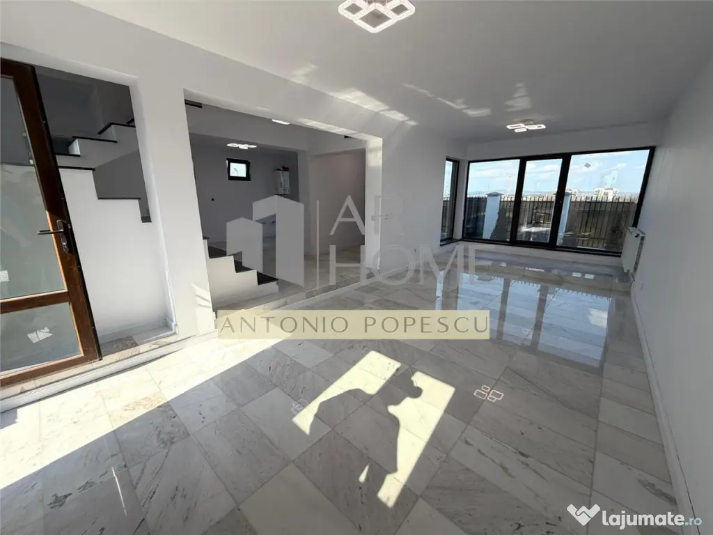 Dotari exterioare: teren imprejmuit cu gard de beton si fier, gazon, sistem de irigatie automatizat cu aspersoare, vopsea decorativa, terase placate cu marmura, alei pietonale si auto betonate si pavate, usa intrare metalica, vopsea decorativa.