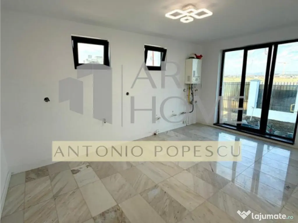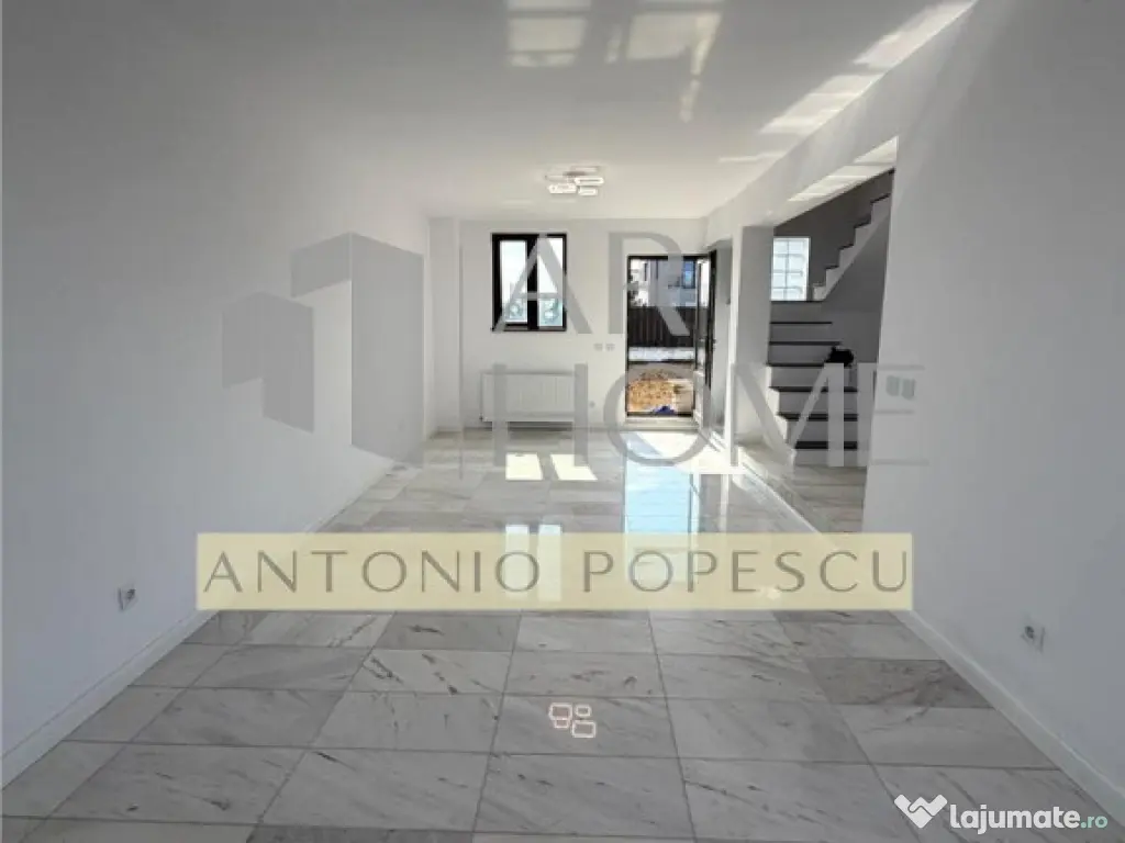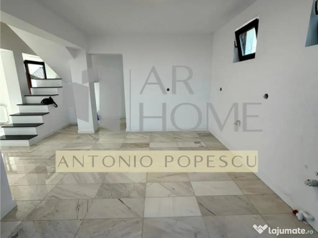 Dotari interioare: tamplarie PVC cu geam termopan, usi interioare celulare Porta Doors, centrala termica pe gaz, calorifere din otel, pardoseli placate cu marmura alba, parchet laminat in dormitoare, scara de beton placata cu marmura, vopsea lavabila etc.