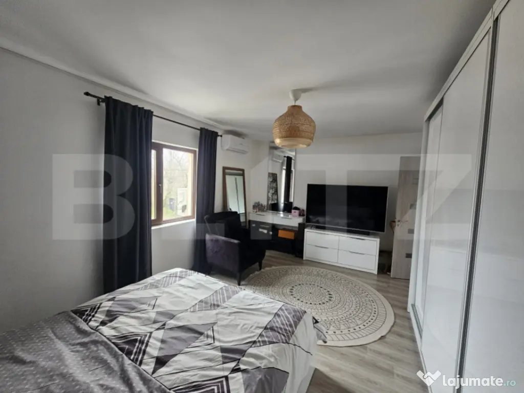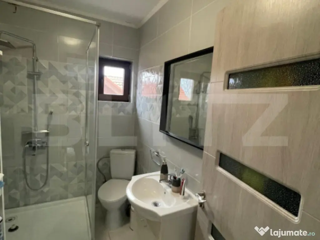 Blitz vă propune spre vânzare o casă primitoare situată în cartierul Bordei din Craiova, într-o zonă de case care oferă liniște, intimitate și confort deplin. Proprietatea se remarcă atât prin compartimentarea practică, cât și prin poziționarea excelentă, cu acces rapid către Mall Electroputere, Aeroport și centrul orașului. La parter, locuința dispune de o sufragerie luminoasă, o bucătărie spațioasă cu ieșire directă pe terasă, unde este amenajată o zonă de grătar ideală pentru momentele de relaxare, precum și o baie modernă cu aerisire naturala. Etajul este dedicat zonei de odihnă și cuprinde trei dormitoare confortabile, o baie și un balcon, perfect pentru a savura o cafea în aer liber. Casa se vinde complet mobilată și utilată, gata pentru a fi locuită fără nicio investiție suplimentară. Este alegerea ideală pentru cei care își doresc un cămin într-o zonă liniștită, dar aproape de toate punctele de interes ale orașului. Curtea a fost amenajata de catre o firma spcializata si include spatii verzi(gazon), o mica zona de relaxare cat si spatiul dedicat pentru a parca masina in curte. Cod ofertă / ID BLITZ: P160261 Id intern: P160261 Număr niveluri imobil: 1 Număr Băi: 2 Curent Apă Gaz Climă