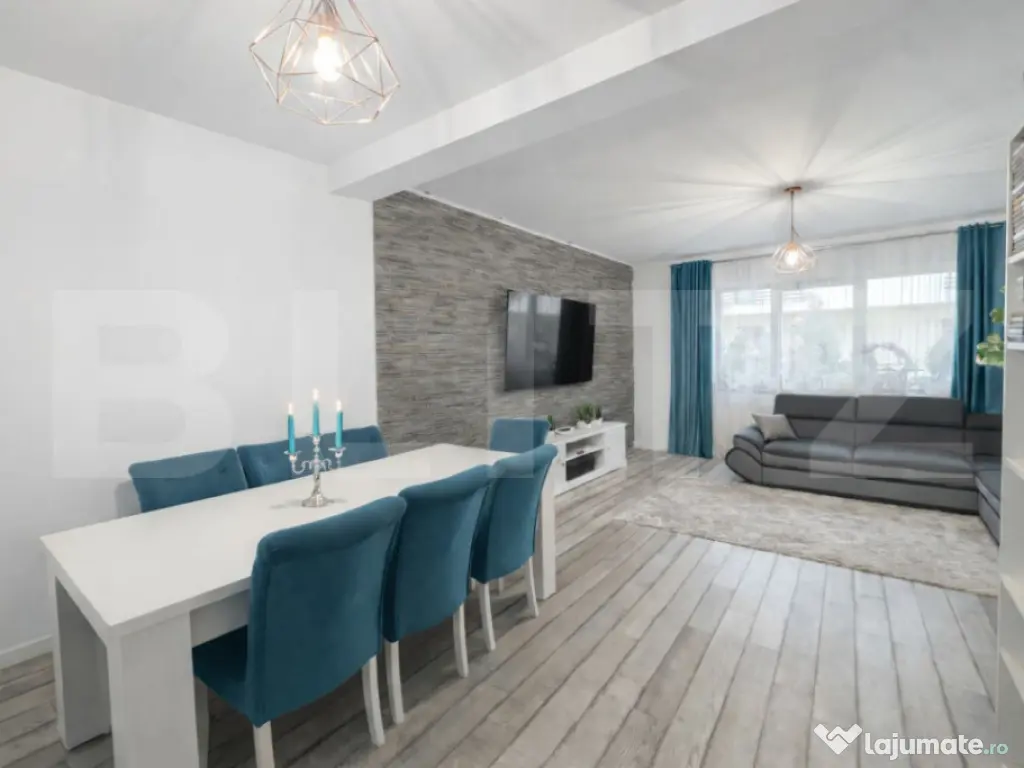 Blitz va propune o proprietate luminoasă și primitoare, ideală pentru familie, situată într-o zonă liniștită de case. Compartimentarea este practică și aerisită, cu spații bine definite pentru viața de zi cu zi: living generos, bucătărie open-space, dormitoare confortabile și zone de depozitare eficiente. Interiorul este modern și îngrijit, gata de mutare, iar curtea proprie oferă locul perfect pentru relaxare sau seri cu prietenii la grătar. Balconul și ferestrele mari aduc lumină naturală pe tot parcursul zilei. DETALII PRINCIPALE:• 4 camere spațioase• curte proprie amenajată• zonă grătar exterioară• 2 locuri de parcare în proprietate• compartimentare practică• mobilată/utilată• disponibilă imediat O locuință echilibrată, confortabilă și ușor de întreținut — perfectă atât pentru locuire personală, cât și pentru investiție. Cod ofertă / ID BLITZ: P163899 Id intern: P163899 Număr niveluri imobil: 1 Număr Băi: 2 Nr. locuri parcare: 2 Curent Apă Canalizare Gaz