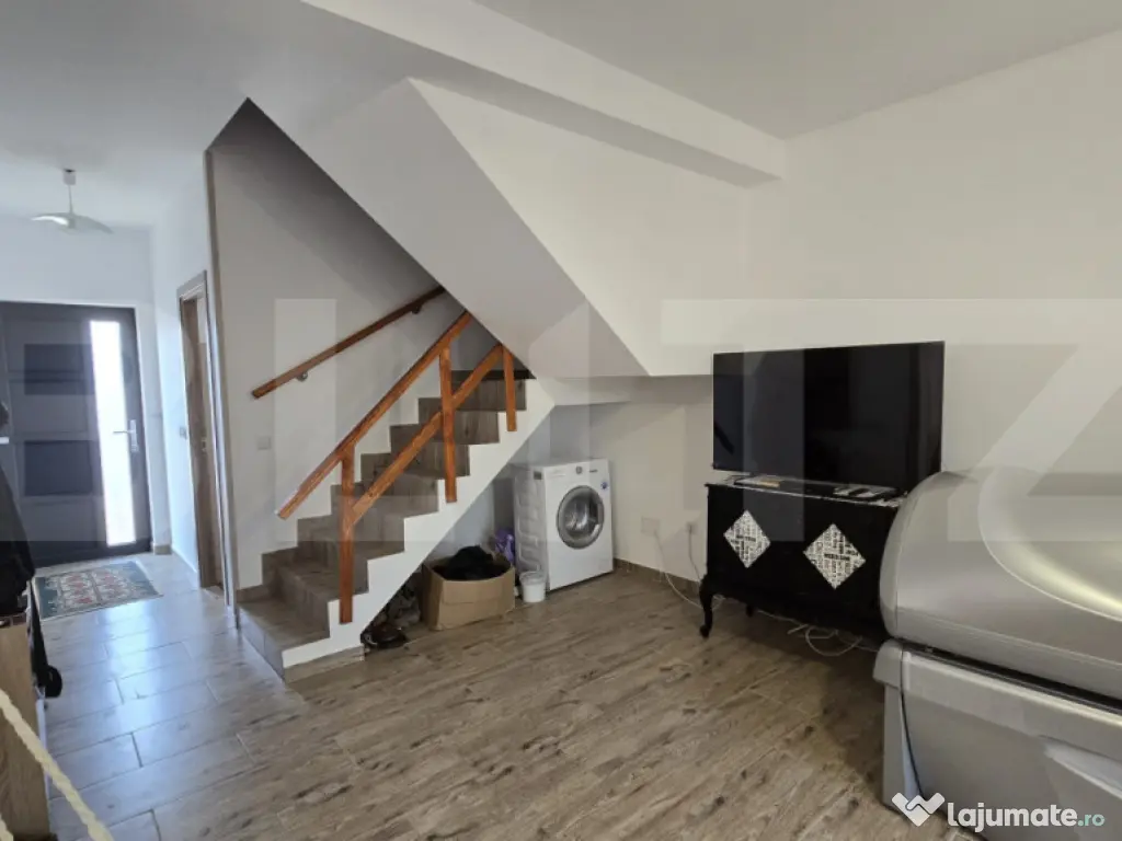 Blitz propune spre vânzare casă tip duplex cu etaj – compartimentare practică și modernă Blitz vă oferă spre vânzare o casă tip duplex cu etaj, bine compartimentată și gândită pentru confortul unei familii cu suprafata de 110 mp Parter bucătărie și living spațios, cu acces direct la o terasă generoasă - 27mp. baie spațioasă, modern utilată. Etaj 3 dormitoare luminoase, baie mare și elegantă. Acces auto direct în curte – loc suficient pentru parcare. O locuință ideală pentru familii, care îmbină spațiul, funcționalitatea și confortul într-o zonă liniștită. Pentru mai multe detalii și vizionări, vă invităm să ne contactați! Cod ofertă / ID BLITZ: P152844 Id intern: P152844 Număr niveluri imobil: 1 Număr Băi: 2 Nr. locuri parcare: 2 Curent Apă Canalizare Gaz