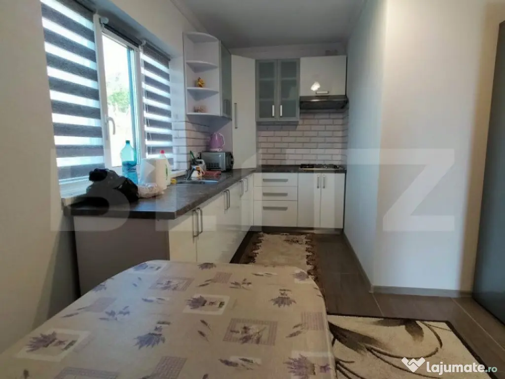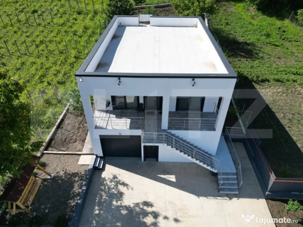 Doar pentru aceasta saptamana pret de vanzare 197.000 euro Blitz va prezinta pentru cumparare o casa deosebita in stil mediteranian in sat Ciurbesti, com. Miroslava, cu o priveliste superba asupra lacului Ciurbesti. Drum asfaltat pana la imobil o mica portiune este pietruita. Imobilul dispune de 200 mp utili plan parter, etaj si terasa la etajul 2, terenul aferent proprietatii este 1050 mp si imprejmuit cu gard de plasa, parcare betonata. Proprietarul are fotografii si inregistrari video cu toate detaliile din faza de constructie, finalizata in 2023. Compartimentare practică și funcțională: parter - garaj, baie, bucatarie si 2 camere de depozitare etaj - living, 3 dormitoare, bucatarie si baie etaj 2 - terasa Construcție este foarte modernă și solidă: Construcția nouă din beton și caramida, usi termopan. izolatia imobilului s-a realizat cu polistiren 10. Dispune de centrala termica si instalatie in pardoseala. Utilitati: apa, curent, fosa septica, gaz. Lumină și spațiu generos: Ferestrele mari cu tâmplărie termopan ce permit pătrunderea abundentă a luminii naturale în interior, creând o atmosferă luminoasă și primitoare. Imobilul este orientat spre sud-vest contribuind și el la confortul termic și luminos al casei. Imobilul este iluminat exterior si este supravegheat video. Proprietatea este înconjurată de un teren generos ce va fi foarte frumos amenajat, pomi fructiferi (nuci, ciresi, meri), ce va oferi o oază de relaxare și confort în aer liber pentru locatari si are o vedere panoramica deosebita. Aceste caracteristici, împreună cu amenajarea și compartimentarea practică, fac din această proprietate o opțiune atractivă pentru cei care caută un cămin modern, luminos și confortabil în zona respectivă. Va asteptam la o vizionare! Cod ofertă / ID BLITZ: P106596 Id intern: P106596 Număr niveluri imobil: 2 Număr Băi: 2 Nr. locuri parcare: 1 Curent Apă Gaz