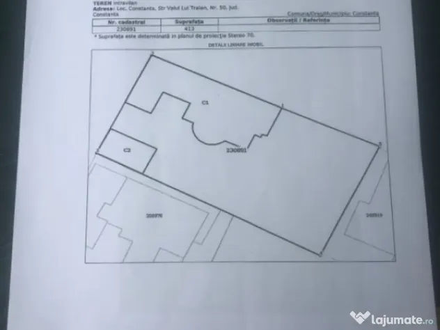 Terenul are 413 mp, cu o deschidere stradală de 14,5 m, oferind multiple oportunități: extindere, investiție imobiliară, amenajare după propriile preferințe sau locuință pentru familie extinsă.