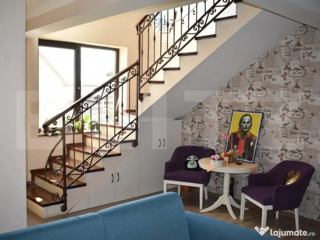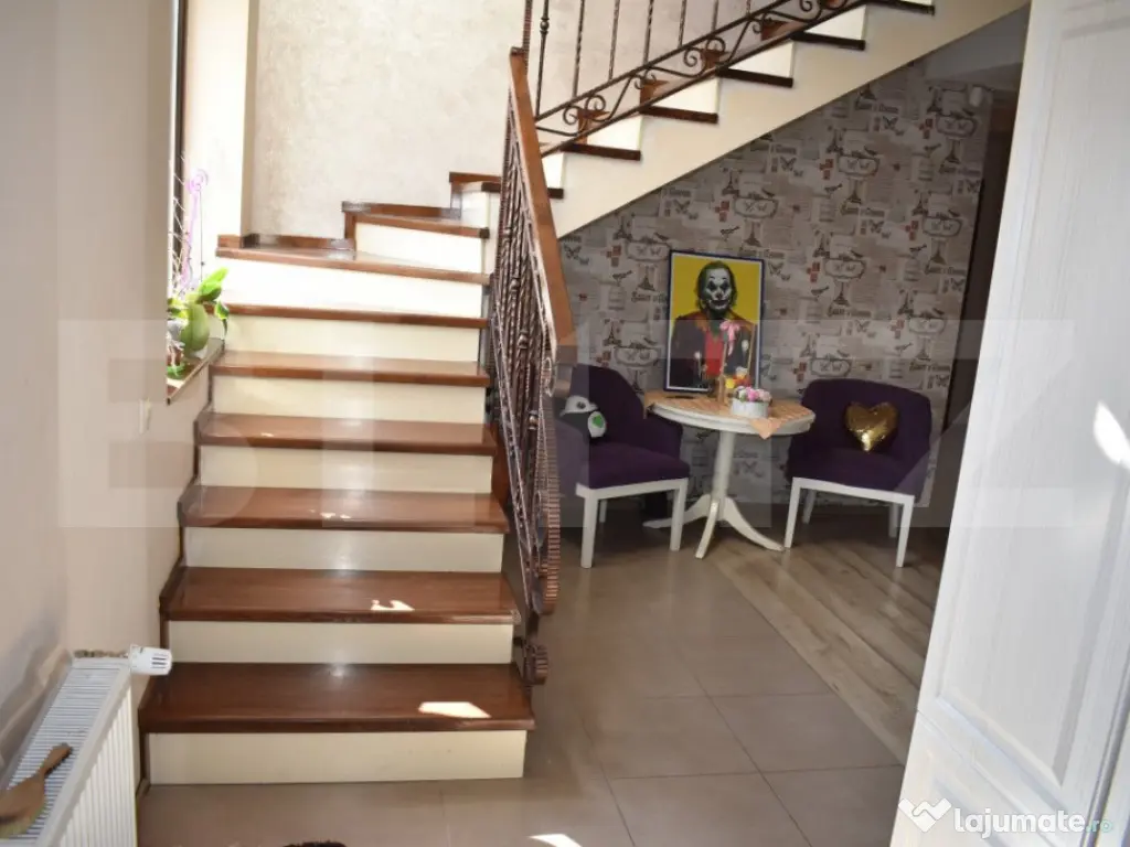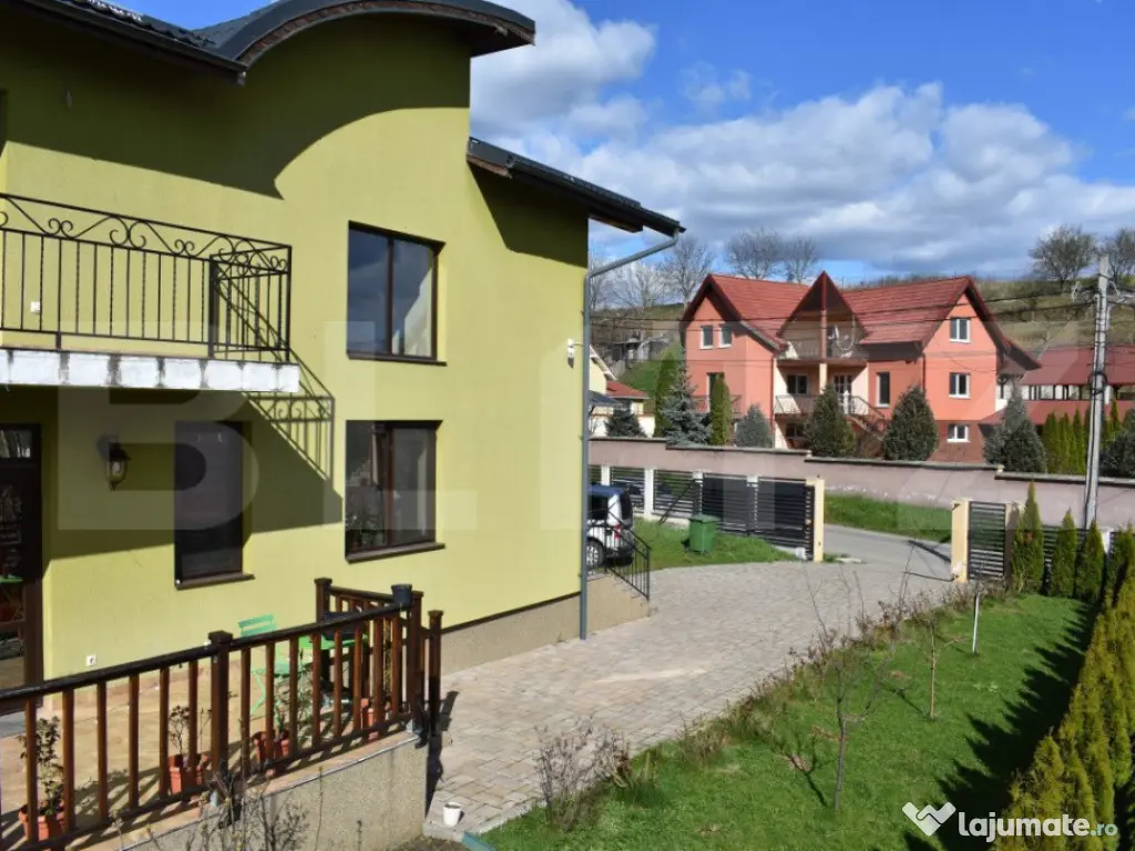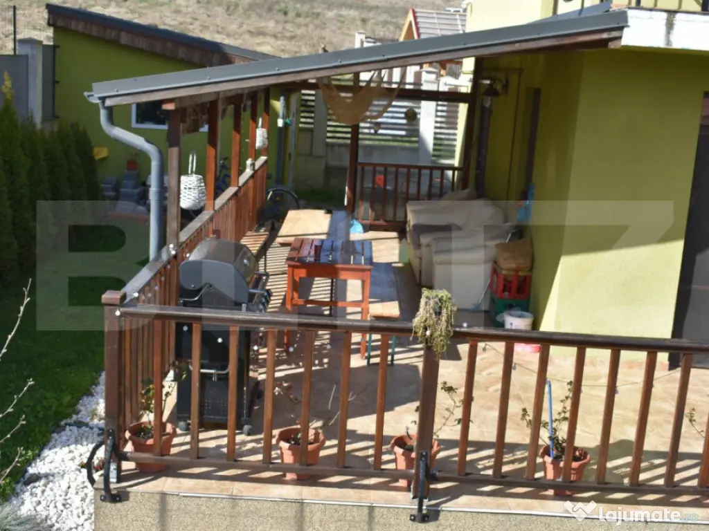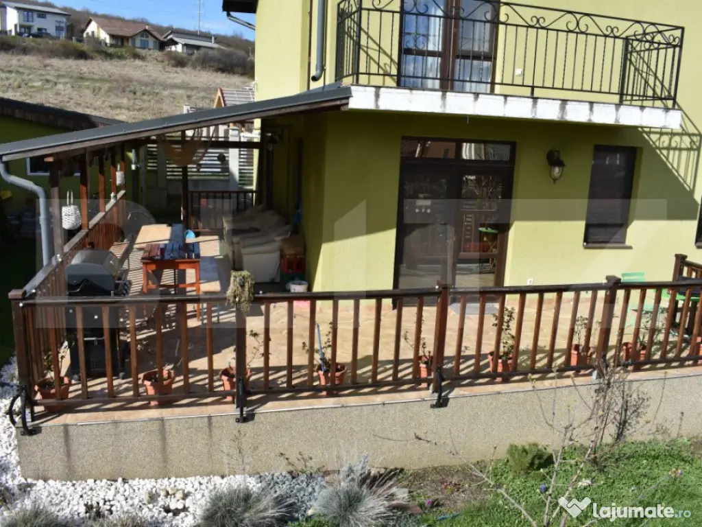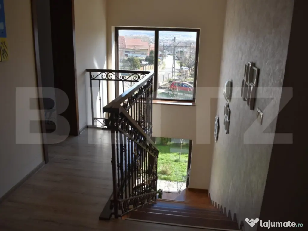 BLITZ va ofera spre vanzare o casa de construita la standarde de inalta calitate ce are in componeneta 4 camere fiind situata in Sancraiu de Mures pe str. Mesteacanului. Casa este construita pe un teren de 5.5ari, are fundatie de beton, peretii construiti din caramida POROTERM de 48 cm nu sunt izolati. Casa are in componenta 1 living, 3 dormitoare, 1 bucatarie, 2 bai, 1 dressing, 1 camera tehnica. Podul este podit iar acoperisul este protejat cu tabla LINDAB. Ferestrele sunt termopan, confortul termic fiind asigurat de o centrala pe gaz si calorifere cuplate la un pufer de 170 l. De asemenea mai gasim un horn pregatit pentru un semineu pe lemne. In componenta proprietatii se mai afla o terasa de 50 mp si un garaj. Casa are montat un sistem de panouri solare de 6 kw cu invertor de 10 kw, sistem de alarmare, sistem de supraveghere video, poarta de acces fiind automatizata. Casa a fost construita sub managementul proprietarului cu materiale si solutii de inalta calitate. Important: cumparatorul are comision zero. Va asteptam cu drag la vizionare!