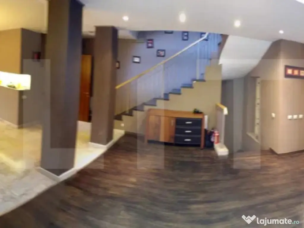 Blitz vă propune spre închiriere o casă elegantă și spațioasă, amplasată pe o alee privată, într-o zonă exclusivistă și liniștită din cartierul Buna Ziua. Proprietatea se remarcă prin compartimentarea eficientă, suprafețele generoase și dotările moderne, oferind tot confortul necesar unei familii care își dorește un cămin echilibrat între intimitate, funcționalitate și rafinament. ???? Localizare excelentă: în imediata apropiere se găsesc magazine, grădinițe, restaurante, stații de transport în comun și alte puncte de interes, facilitând accesul rapid către centrul orașului și principalele artere rutiere. ???? Regim de înălțime: Demisol + Parter + Etaj + Mansardă ???? Suprafață utilă: 320 mp ???? Compartimentare detaliată: • Demisol: garaj spațios pentru două autoturisme, sală de sport perfectă pentru activități recreative, cameră tehnică, precum și o debara pentru depozitare suplimentară. • Parter: un living generos, luminos și primitor, cu acces direct către curtea amenajată; bucătărie modernă cu zonă de luat masa, cămară practică și baie de serviciu. • Etaj: două dormitoare pentru copii, o baie comună, iar dormitorul matrimonial beneficiază de dressing separat și baie proprie, oferind intimitate și confort. • Mansardă: un spațiu dedicat relaxării, care include un dormitor suplimentar cu baie proprie, o saună și o terasă spațioasă, ideală pentru momente de destindere și priveliști încântătoare. ✨ Dotări și beneficii: ✔️ Centrală termică proprie ✔️ Finisaje moderne și materiale de calitate superioară ✔️ Curte amenajată cu zonă verde și spațiu pentru relaxare ✔️ Casă luminoasă, orientată optim ✔️ Mobilată parțial, oferind libertatea personalizării spațiului ???? Disponibilă imediat Cod ofertă / ID BLITZ: P155777 Id intern: P155777 Număr niveluri imobil: 3 Număr Băi: 3 Nr. locuri parcare: 1 Curent Apă Gaz