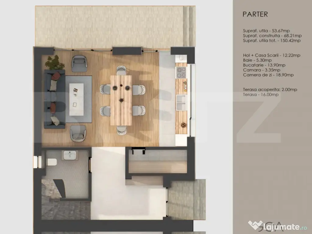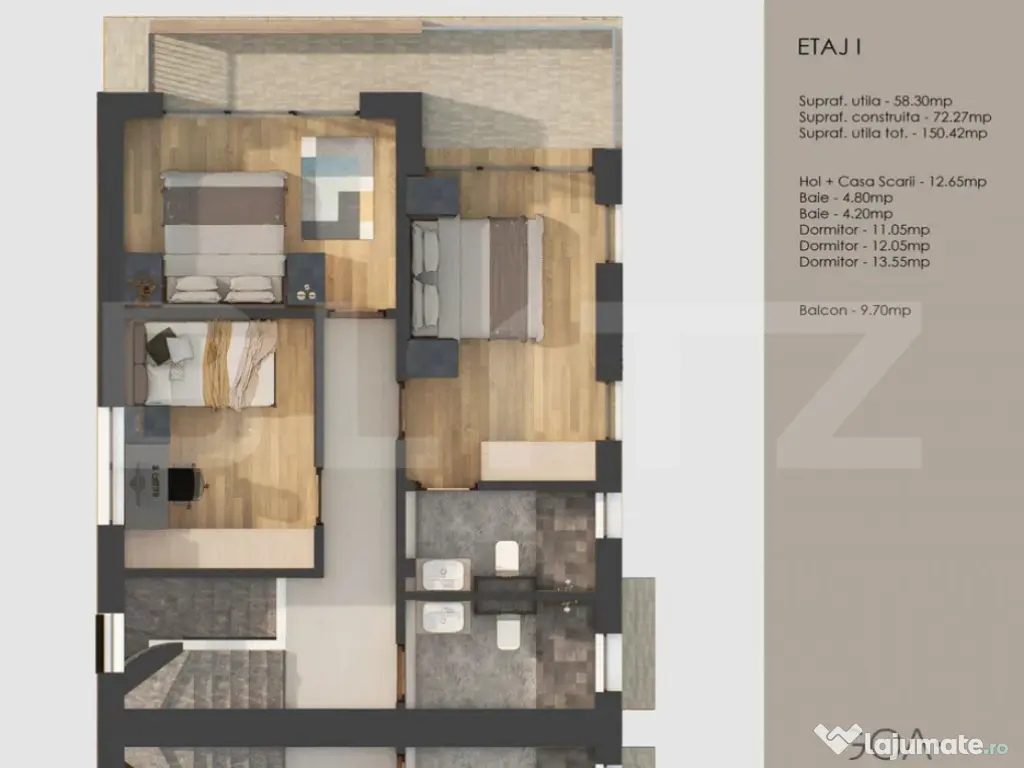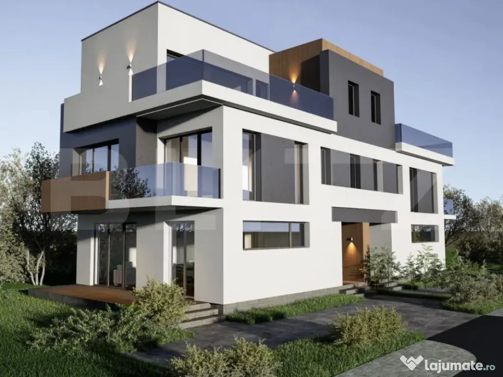 Blitz va prezinta o casa amplasată strategic în cartierul Tractorul, la doar 2 minute de Coresi Mall, această casă tip duplex oferă 208 mp utili in total din care 151 mp locuibili și 57 mp de terase si balcoane. Suprafata construita 248 mp. Pe langa spatiul disponibil in curte mai avem o parcela cu drept de servitute cu piciorul sau cu mașina in favoarea proprietarilor de la acest duplex. Dotată cu materiale de înaltă calitate și încălzire în pardoseală integrală, această proprietate reprezintă o investiție inteligentă pentru o viață modernă și confortabilă. Cu un regim de înălțime P+2, casa este amplasată pe o stradă privată, care se va securiza cu barieră pentru intimitate și siguranță. Cu un design inteligent, locuința dispune la parter de un hol primitor, o baie, spatiu de depozitare, bucătărie si living luminos, ambele cu acces direct într-o terasă primitoare. La etajul 1, găsiți un hol spațios, un dormitor matrimonial cu baie proprie și nisă pentru dressing. De asemenea, beneficiați de încă două dormitoare cu balcon și o baie comună. Etajul 2 oferă un dormitor master de 20 mp, o alta baie moderna si un dresing, si o terasă generoasă de 30 mp pentru momente relaxante. Proprietatea este înconjurată de un teren liber de 125 mp, cu construcție realizată din materiale de calitate, asigurând confort termic și fonic. Construcția este realizată cu materiale de calitate, cum ar fi caramida caramida de 30 cm la exterior, peretii despartitori din caramidă la interior, structura pe cadre și tamplarie Gealan S8000 cu 3 foi de sticlă, asigurând confortul termic și fonic. Beneficiați de încălzirea în pardoseală integrală cu centrala Ariston wi-fi şi planşeu ceramic LEP, care asigură economie de energie. Mai mult, finisajele vor fi alese de viitorii proprietari într-un buget prestabilit, astfel încât să vă puteți personaliza casa după propriul gust și preferințe. Predare SEPTEMBRIE 2025 ! Pentru informatii suplimentare si vizionari, va stau la dispoziție! Va invit la vizionare! Cod ofertă / ID BLITZ: P148347 Id intern: P148347 Număr niveluri imobil: 2 Număr Băi: 4 Nr. locuri parcare: 2