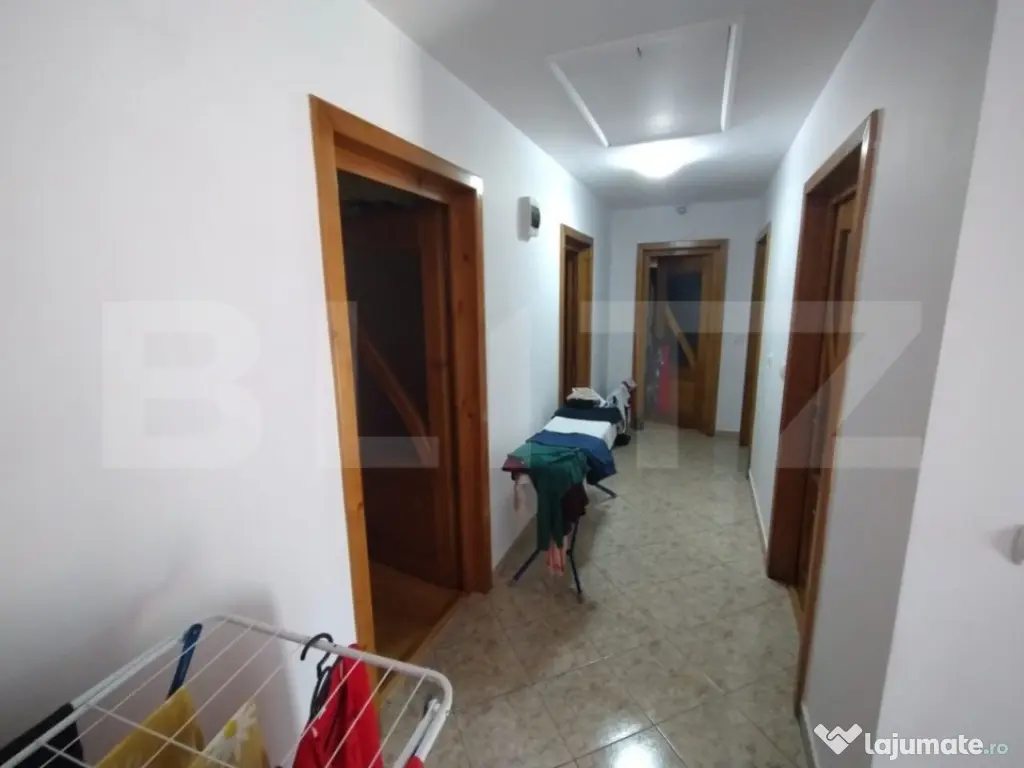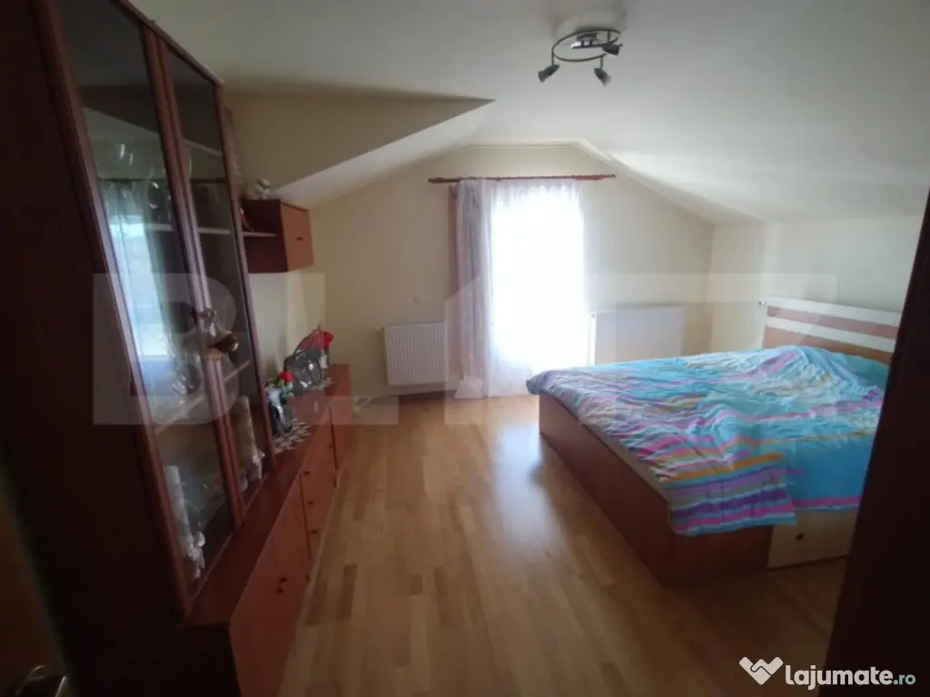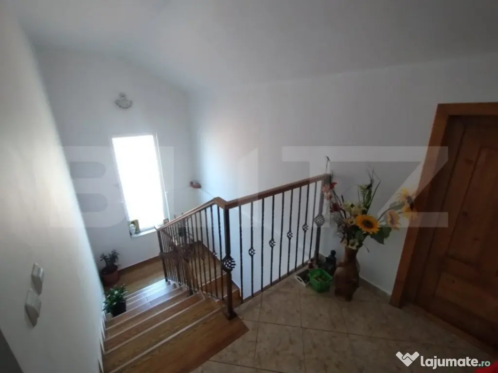 BLITZ va propune spre vanzare o oportunitate rară pe piața imobiliară – o casă splendidă, gata de locuit, situată pe un teren vast de 300 mp, cu o suprafață locuibilă de 150 mp,living,bucatarie,baie,casa scari,terasa la parterul casei,mansarda avand 3 dormitoare un dresing,baie,si un spatiu de depozitare. Această proprietate nu este doar o casă, ci un sanctuar al confortului și eleganței, proiectată pentru a satisface cele mai înalte standarde ale vieții moderne. Pășind în interior, veți fi întâmpinați de un ambient cald și primitor, unde fiecare spațiu este optimizat pentru confort și funcționalitate. Bucătăria, echipată la cele mai înalte standarde și mobilată cu gust, transformă prepararea meselor într-o adevărată plăcere, în timp ce livingul deschis și luminos invită la momente de relaxare și socializare. Dormitorul principal, un adevărat refugiu de liniște, dispune de un dressing spațios și o baie elegantă. Mansarda casei ascunde alte comori: 2 dormitoare suplimentare, o baie și un dressing, toate concepute pentru a oferi spațiu și intimitate. Această proprietate excepțională se află într-o zonă prietenoasă , promițând nu doar un camin, ci un stil de viață de invidiat. Și toate acestea, la un preț incredibil, făcând această ofertă una dintre cele mai atractive pe piața actuală. Cod ofertă / ID BLITZ: P106099 Id intern: P106099 Număr niveluri imobil: 1 Număr Băi: 3 Curent Apă Canalizare