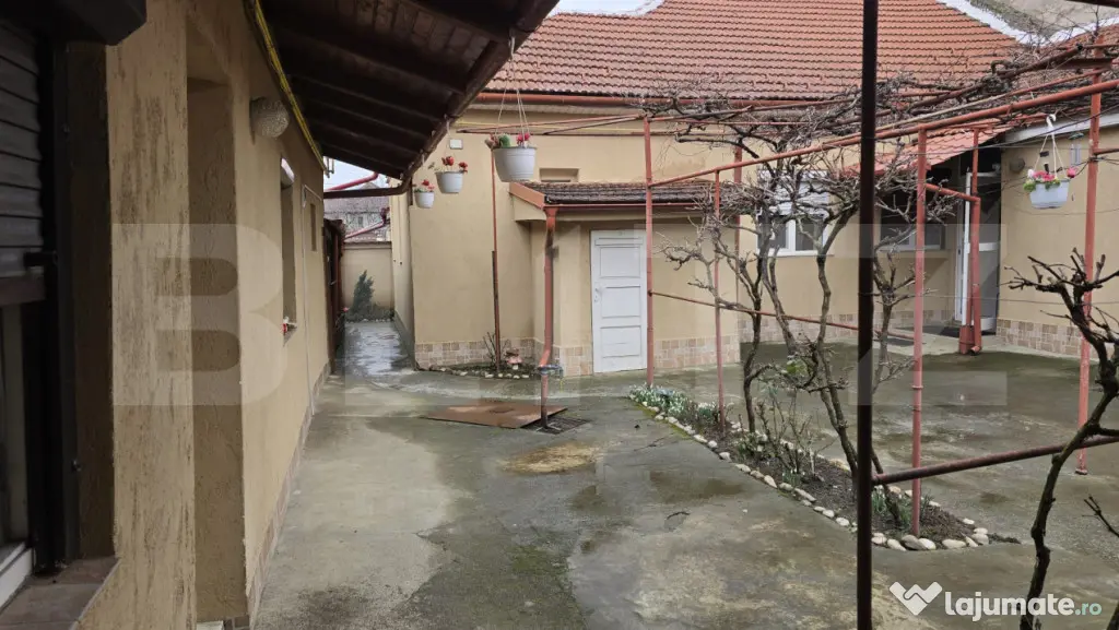 În exterior, proprietatea beneficiază de o curte amenajata cu vie, o terasă generoasă, ideală pentru relaxare, precum și de loc de parcare acoperit pentru autoturism.
