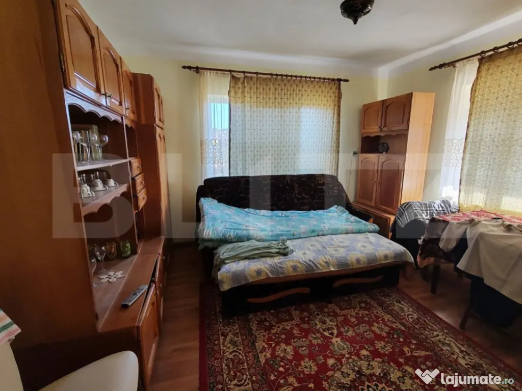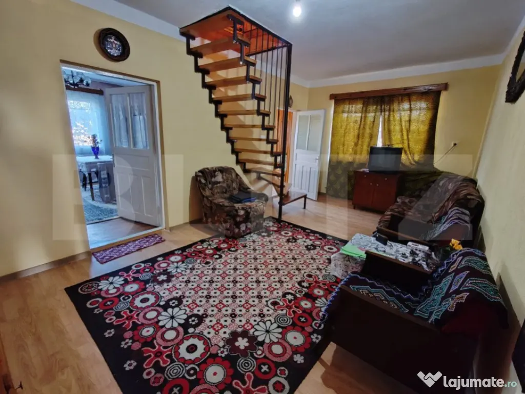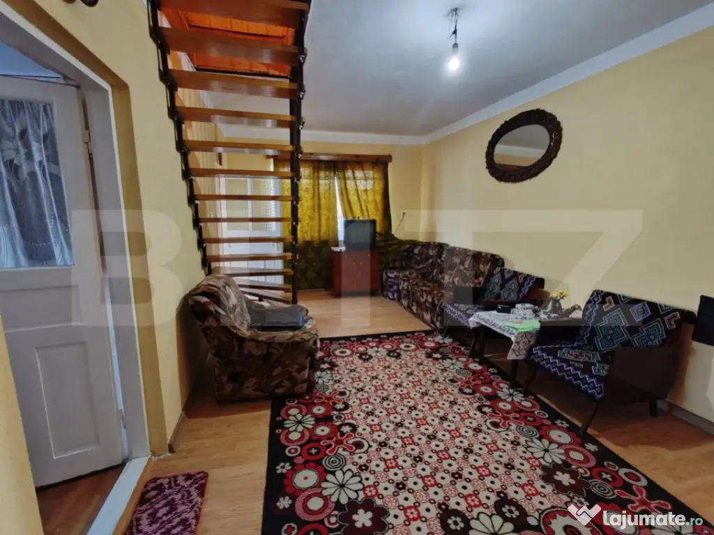 Casa individuala pe doua nivele, proprietatea se remarca prin spatiul generos . Aceasta este construita pe un teren cu o suprafata de 30 ari cu garaj,anexe si o gradina generoasa,iar suprafata casei este de 160 mp utili fiind compartimentata astfel: LA PARTER -4 dormitoare,bucatarie,baie si living.LA ETAJ -o camera care dispun de balcon. Va asteptam la vizionare.