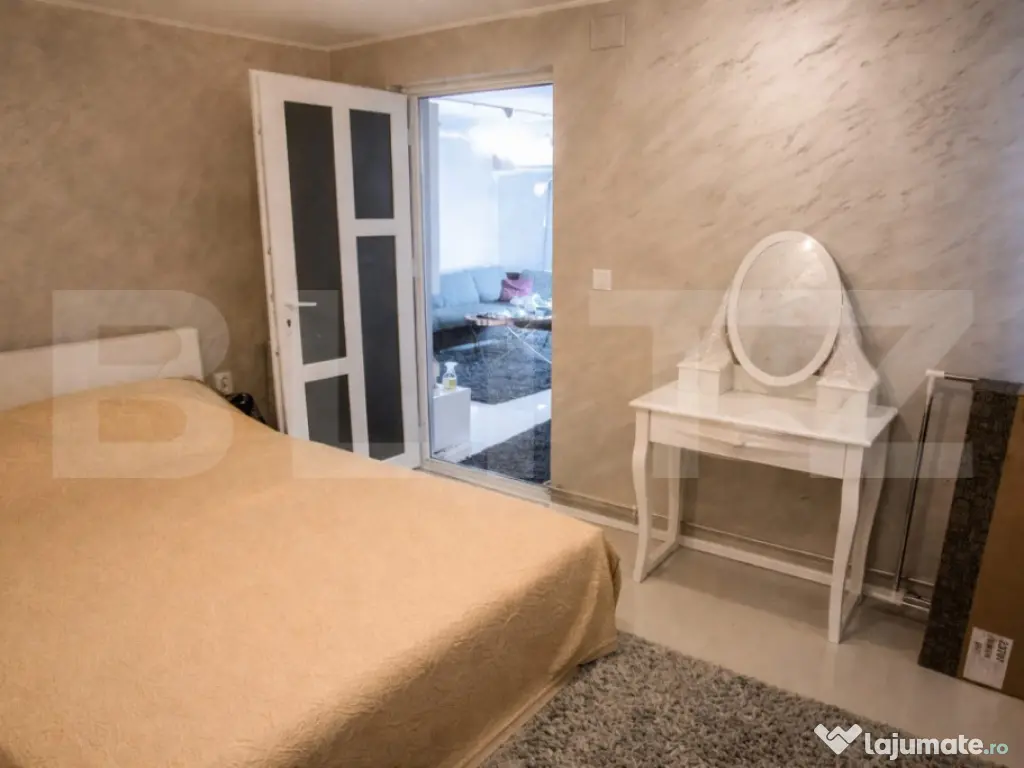 BLITZ ofera spre vanzare casa parter, renovată mobilata si utilata, situată pe o stradă asfaltată, într-o zonă accesibilă a orasului, la un pret mai mic decat un apartament cu 2 camere Proprietatea are o suprafață construită de 72 mp și este amplasată pe un teren de 106 mp cu o deschidere de 13,4 ml, oferind un echilibru ideal între confortul interior și avantajul unui spațiu exterior propriu. Curtea permite amenajarea unei zone de relaxare, loc de gratar sau chiar a unui foișor. Un plus important îl reprezintă deschiderea buna la stradă, care permite parcarea a două mașini în fata curtii, un beneficiu rar întâlnit pentru proprietăți de acest tip. Locuința este renovată, cu finisaje moderne, fiind pregătită pentru mutare imediata si este racordatala curent(trifazic), apa, canalizare, fibra optica, iar gazele sunt la front, incalzire efectuandu-se prin ct electrica si calorifere. De asemenea, poziționarea este foarte practică, în apropiere de stație de autobuz,supermarket(distanta de mers pe jos) si la 4 minute cu masina de mallul Promeada, facilitând si acces rapid catre punctele de interes ale orasului Proprietatea se încadrează într-un buget accesibil, fiind sub prețul unui apartament cu două camere, ceea ce o transformă într-o oportunitate excelentă atât pentru locuință personală, cât și pentru investiție. Cod ofertă / ID BLITZ: P169511 Id intern: P169511 Număr Băi: 1 Nr. locuri parcare: 2 Curent Apă Canalizare Gaz Climă