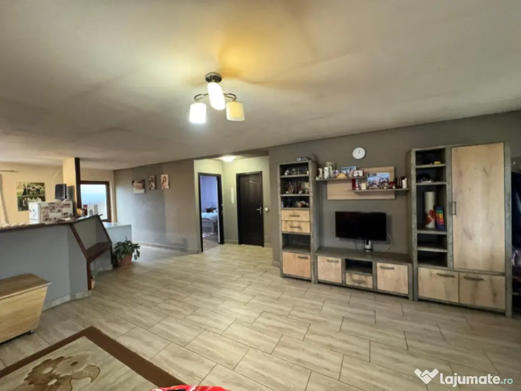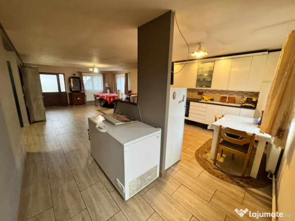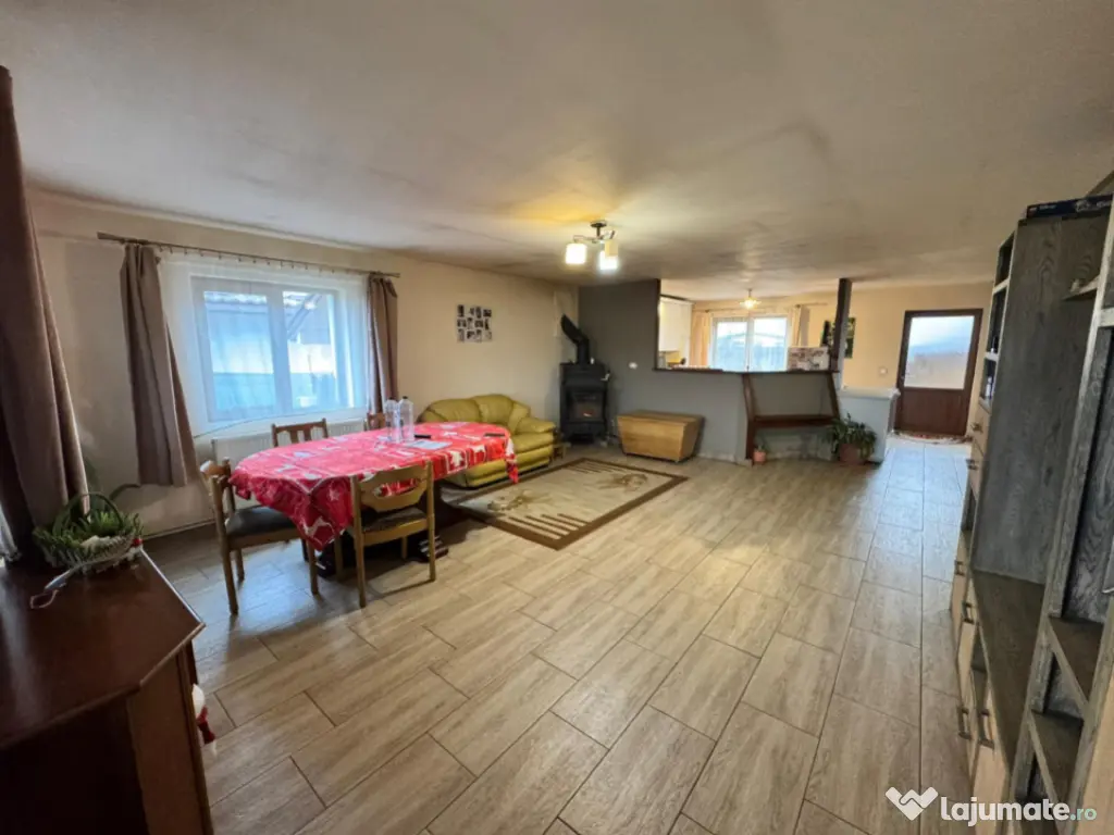 Blitz va propune spre vanzare o proprietate construită în 2017, amplasată pe un teren de 5 ari (500 mp), ideală pentru cei care își doresc liniște și intimitate. Casa are o suprafață de 89 mp utili și 104 mp construiți, fiind eficient compartimentată și bine întreținută. Beneficiază de izolație exterioară, acoperiș din tablă și sistem de încălzire cu șemineu și calorifere, oferind confort pe tot parcursul anului. Casa , fiind compartimentată eficient: două dormitoare foarte generoase, living spațios tip open-space cu bucătăria, un spațiu luminos, aerisit și primitor, completat de o baie mare Un punct forte al proprietății este terasa generoasă de 26 mp, perfectă pentru relaxare, precum și anexa / camera tehnică, utilă pentru depozitare sau spațiu auxiliar. Casa are un aer cochet și primitor și oferă posibilitatea de amenajare și personalizare după propriul gust, fiind ideală atât ca locuință permanentă, cât și ca reședință de weekend. Cod ofertă / ID BLITZ: P163082 Id intern: P163082 Număr Băi: 1 Nr. locuri parcare: 3 Curent Apă Canalizare