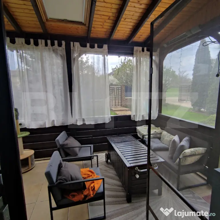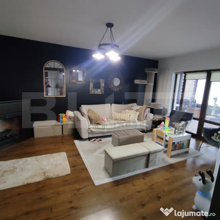 Proprietatea se evidențiază prin finisaje atent alese, ambient plăcut și un nivel ridicat de confort, fiind complet mobilată și utilată, gata pentru mutare imediată. În zona de zi regăsim un șemineu care oferă un plus de confort și eleganță.
