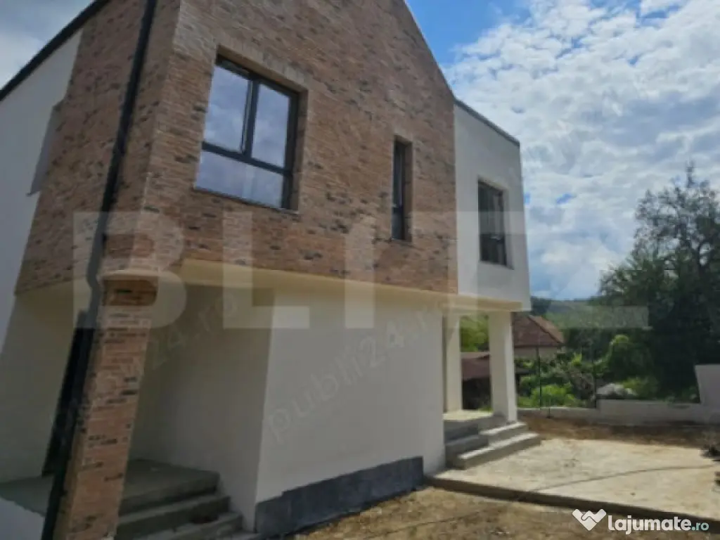 Blitz vă propune spre vânzare o unitate de duplex situată într-un ansamblu rezidențial privat din Tăuți, la câteva minute de Cluj-Napoca. Proprietatea se află într-o zonă liniștită și verde, cu acces facil și priveliști superbe asupra văii. Detalii proprietate: -Suprafață utilă: 136 mp (105 mp + mansardă open-space de 32 mp) -Compartimentare: -Parter: living generos (25 mp), bucătărie open-space (9,5 mp), cămară, baie cu duș, hol de acces, terasă și curte proprie -Etaj: 3 dormitoare, 2 băi (dintre care una matrimonială), hol -Mansardă: open space 32 mp cu posibilitate de amenajare dormitor matrimonial, baie și dressing, plus terasă de 20 mp -Teren: 200 mp, cu curte amenajată și loc de parcare inclus Construcție și dotări: -Toate utilitățile disponibile: gaz, curent, apă, canalizare -Încălzire în pardoseală -Izolație exterioară Austrotherm 15 cm (densitate 100) -Hidroizolație la fundație și bazin de retenție pentru apele pluviale -Tâmplărie Salamander tripan (3 foi sticlă) -Acoperiș Bilka -Fațadă placată cu cărămidă aparentă -Predare la stadiu semifinisat, cu exterior complet finalizat -Curtea se predă amenajată, cu gazon însămânțat Avantaje zonă: -Drum privat de 7 m lățime, ce deservește doar ansamblul -Stație de autobuz la cateva sute de metri -Grădiniță modernizată in vecinatate -Magazin alimentar la 2 case distanță -Drum principal în curs de modernizare și asfaltare cu trotuare -Acces rapid către Cluj-Napoca – 5-10 minute pe multiple rute (Florești, Grigorescu, Polus-Răzoare) -Proximitate față de pădure, trasee de drumeție, Vivo Mall, parcul Poligon, obiective turistice și culturale Această proprietate reprezintă alegerea ideală pentru o familie care caută liniște, intimitate și confort, dar și pentru investiție, într-o zonă în plină dezvoltare. Preț competitiv. Vă invităm la o vizionare pentru a descoperi toate avantajele acestei locuințe! Cod ofertă / ID BLITZ: P152705 Id intern: P152705 Număr niveluri imobil: 2 Număr Băi: 2 Curent Apă Canalizare Gaz