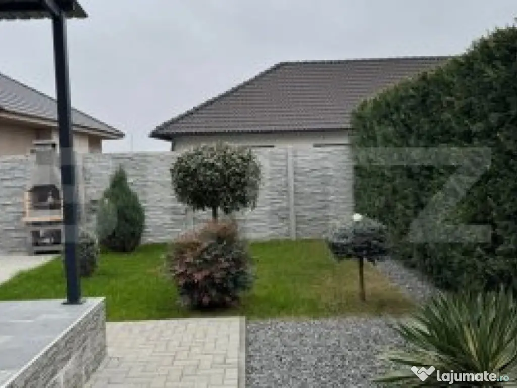 Curtea este amenajata cu mult bun gust, avand gazon si o terasa special gandita pentru momentele de relaxare in aer liber. In fata casei exista loc de parcare amenajat.