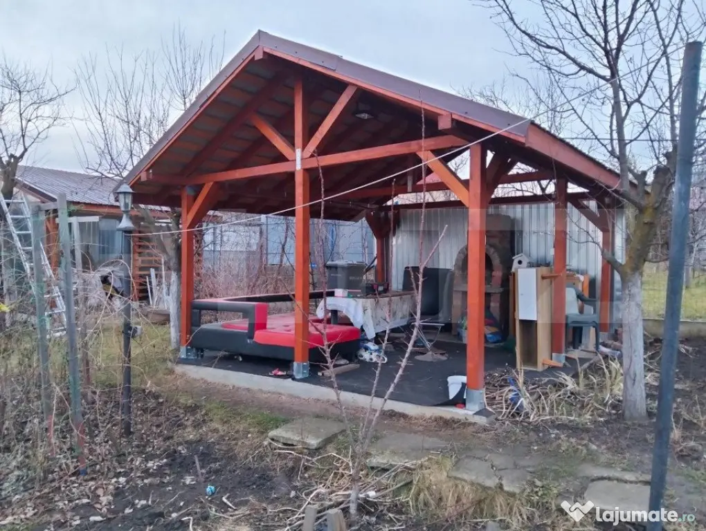 In gradina este construit si un foisor, spatiu depozitare, gazon, etc.