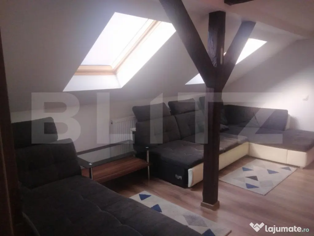 Mansarda : cu intrare separata sau scara interioara ( momentan nu este construita) : bucatarie, baie, living si dormitor