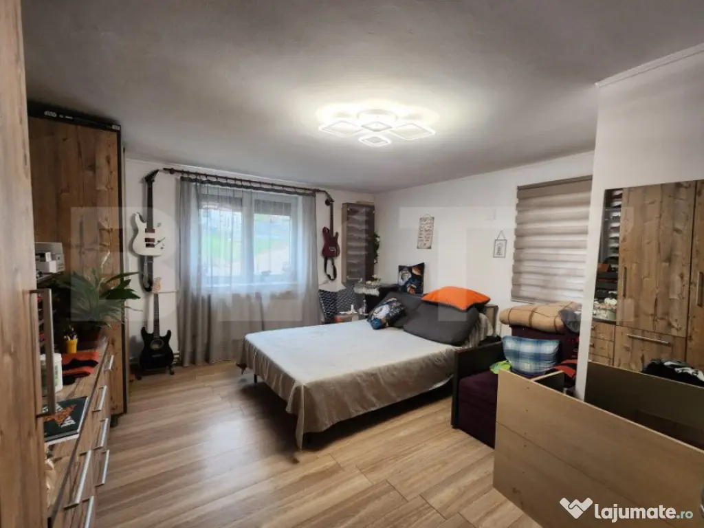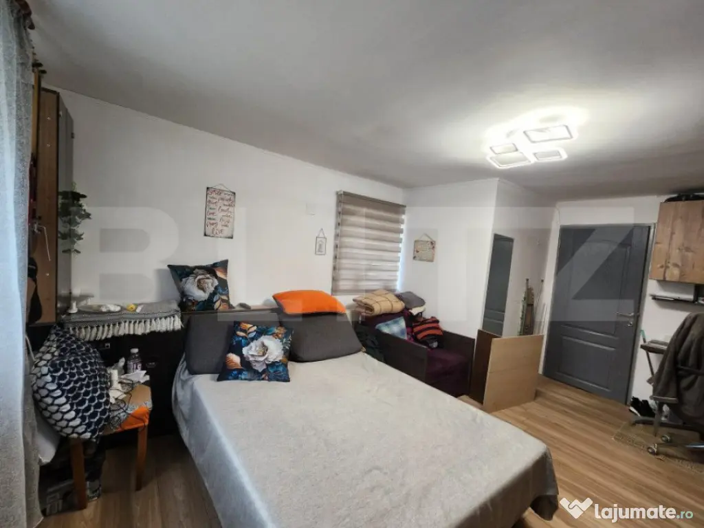 Blitz Imobiliare vă invită să descoperiți o proprietate, mai mult decât o casă — un adevărat refugiu al liniștii și al armoniei, locul unde fiecare zi capătă sens, iar ideea de „acasă” prinde contur în cel mai cald mod posibil. Situată în zona Unirii, cu acces facil direct de la șosea și o panoramă care vă încântă privirea în orice moment al zilei, această proprietate îmbină perfect intimitatea cu conectivitatea urbană. Cu o suprafață utilă de 102 mp și un teren generos de 1000 mp, casa este alegerea ideală pentru o familie care își dorește spațiu, confort și libertate — sau chiar pentru două generații care vor să fie împreună, dar să se bucure de independență. Compartimentarea inteligentă transformă această locuință într-un spațiu cu adevărat special: o zonă separată, perfectă pentru bunici sau oaspeți, oferă intimitate deplină, cu cameră proprie, baie și posibilitatea amenajării unei bucătării — un colț liniștit, dar mereu aproape de familie. Locuința principală vă întâmpină cu 3 camere luminoase și primitoare, 2 bucătării din care una este complet utilată, două băi moderne — una cu cadă pentru momentele de răsfăț și relaxare, cealaltă cu duș pentru ritmul alert al vieții cotidiene, o camara foarte mare, si un hol generos. Spațiile de depozitare sunt generoase și bine gândite, inclusiv pod extrem de încăpător. Construită solid pe fundație de beton, casa are o structură din cărămidă plină dublă, cu o grosime de 40 cm, completată de un strat de polistiren de 8 cm, rezultând pereți exteriori de aproximativ 50 cm — un avantaj major pentru durabilitate și eficiență termică. Acoperișul a fost complet renovat, inclusiv hornul șemineului, iar lucrările de modernizare finalizate în 2025 aduc un plus de siguranță și eleganță. Ferestrele termoizolante și șemineul cu focar închis creează o atmosferă caldă și primitoare, în timp ce podul izolat și podit devine un spațiu practic și valoros. În zilele toride, sistemul de aer condiționat completează perfect confortul interior. Curtea generoasă este o oază de relaxare — un loc unde copiii pot alerga în voie, iar serile de vară devin amintiri prețioase alături de cei dragi. Anexele, respectiv un atelier de 18 mp și un spațiu de depozitare de 13 mp, adaugă funcționalitate și deschid noi posibilități pentru hobby-uri sau activități practice. Proprietatea se vinde parțial mobilată, inclusiv bucătăria, fiind pregătită să vă primească fără griji, ca și cum v-ar fi așteptat dintotdeauna. Aceasta nu este doar o casă — este locul unde diminețile sunt liniștite, unde serile adună familia în jurul șemineului și unde fiecare generație își găsește propriul echilibru între intimitate și apropiere Cod ofertă / ID BLITZ: P143152 Id intern: P143152 Număr Băi: 2 Curent Apă Canalizare Gaz Climă