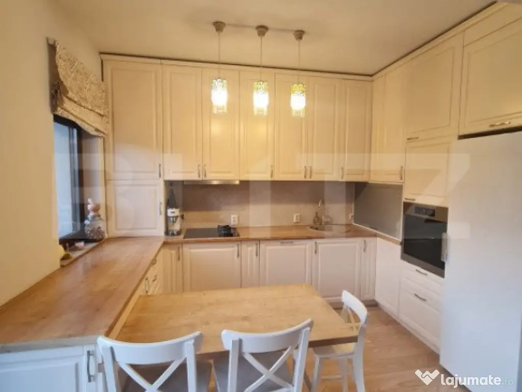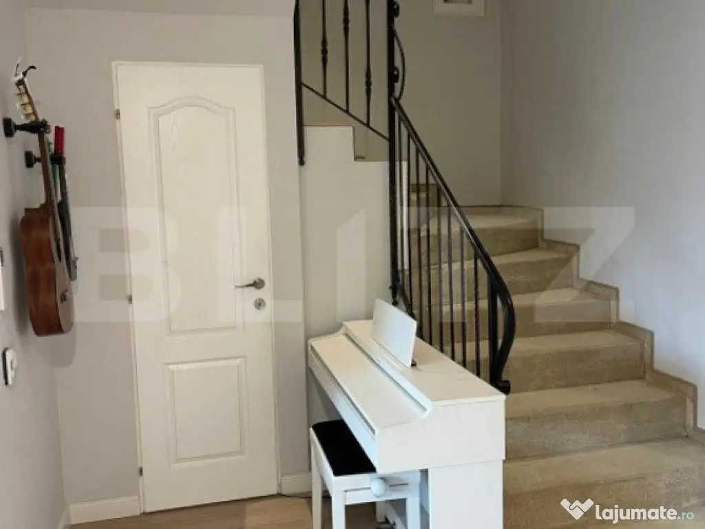 De vanzare casa tip duplex, mobilata si utilata. Imobilul este construit din caramida si izolat termic la exterior, dispune de aer conditionat, centrala termica proprie, tamplarie PVC cu geam termopan, incalzire in pardoseala si este compartimentat astfel: Parter; hol, living cu bucatarie open space( cu posibilitate de decomandare), birou, debara, baie si terasa. Etaj; hol, 3 dormitoare, baie si balcon. Podul dispune de acces si poate fi folosit ca spatiu de depozitare. Pentru mai multe detalii nu ezitati sa ne contactati. Cod ofertă / ID BLITZ: P139334 Id intern: P139334 Număr niveluri imobil: 1 Număr Băi: 2 Nr. locuri parcare: 3 Curent Apă Canalizare Gaz Climă