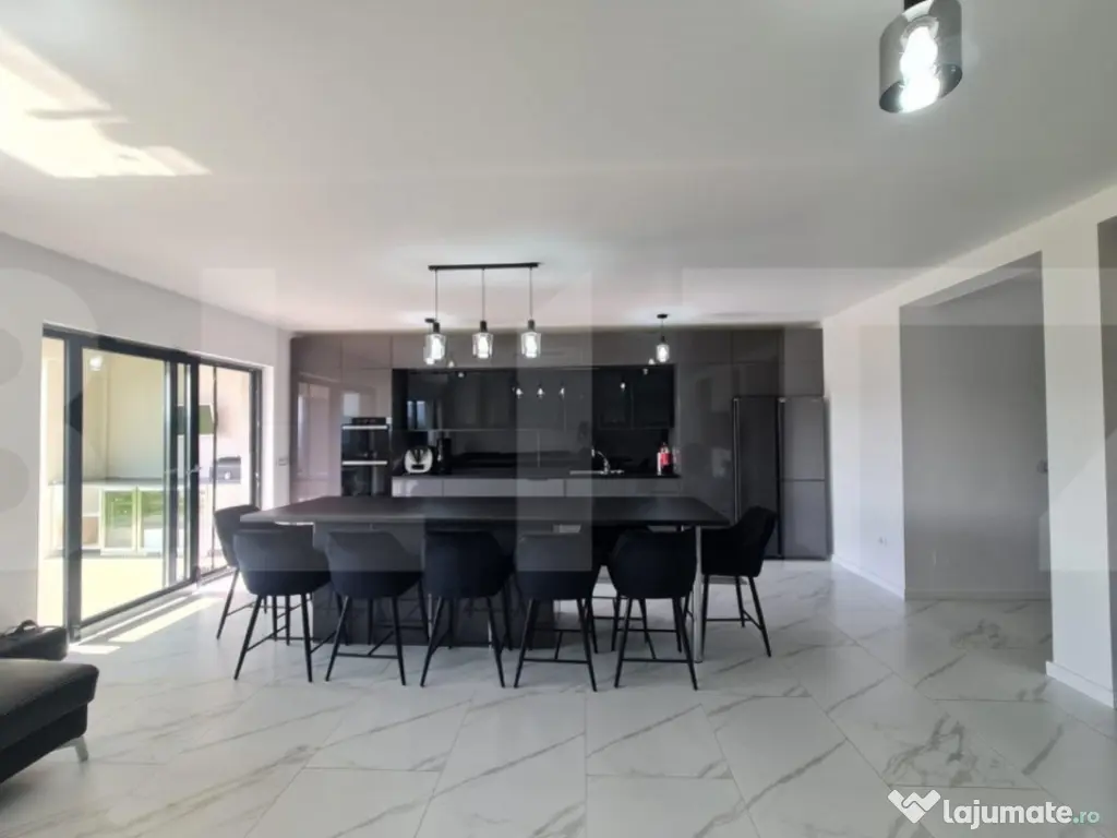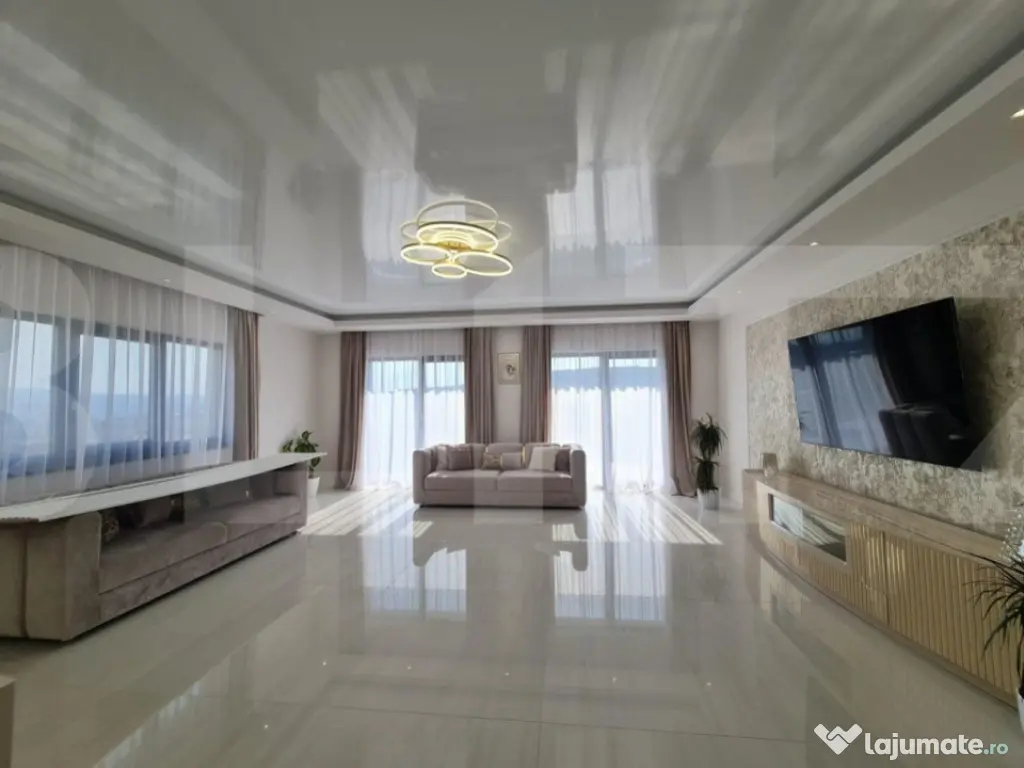 Va propunem spre vanzare o proprietate deosebita, cu un view spectaculos asupra orasului. Zona este foarte linistitainsa in acelasi timp si accesibila spre oras, la cateva minute sunt statii de bus, magazine, farmacii. Casa este dispusa pe 3 niveluri. La primul nivel - cu accesul in spre curte este bucataria - mobilata - utilata, zona de luat masa , baie, camera tehnica . La al doilea nivel avem un living spatios , balcon, dormitor, baie . Iar la etaj este dormitorul matrimonial cu dressing si baie si inca o camera pentru oaspeti. Casa se vinde mobilata si utilata precum este prezentata in fotografii. Casa dispune de garaj, are in proiect si psicina care va urma sa fie construita. Suprafata terenului este de 500 mp. Pentru mai multe informatii ma gasiti la numerele de telefon afisate. Cod ofertă / ID BLITZ: P93728 Id intern: P93728 Număr niveluri imobil: 1 Număr Băi: 4 Nr. locuri parcare: 3