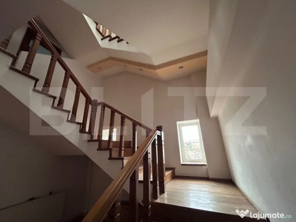 Blitz vă propune spre închiriere o casă spațioasă și versatilă, perfectă pentru activități comerciale sau de birouri, situată în apropiere de Ford Ottosan. Detalii generale: Suprafața utilă: 330 mp Suprafața terenului: 900 mp Locație: Aproape de Ford Ottosan, într-o zonă accesibilă Compartimentare: Parter: living spațios și foarte luminos, dormitor, bucătărie, 2 băi; Etajul 1:4 dormitoare, dressing, 2 băi; Mansarda: 1 cameră. Facilități suplimentare: incălzire prin centrală proprie pe gaz, 3 seminee pentru un plus de confort și atmosferă plăcută, garaj pentru parcare. Datorită amplasării și compartimentării excelente, această proprietate este ideală pentru: grădiniță sau afterschool, clinică medicală, birouri sau activități comerciale. De asemenea, curtea generoasă poate găzdui până la 5 mașini, iar spațiile interioare sunt flexibile și se pot adapta diverselor nevoi ale afacerii tale. Pentru mai mulkte detalii, va asteptam cu drag la vizionare! Cod ofertă / ID BLITZ: P137747 Id intern: P137747 Număr niveluri imobil: 2 Număr Băi: 4 Nr. locuri parcare: 5 Curent Apă Canalizare Gaz