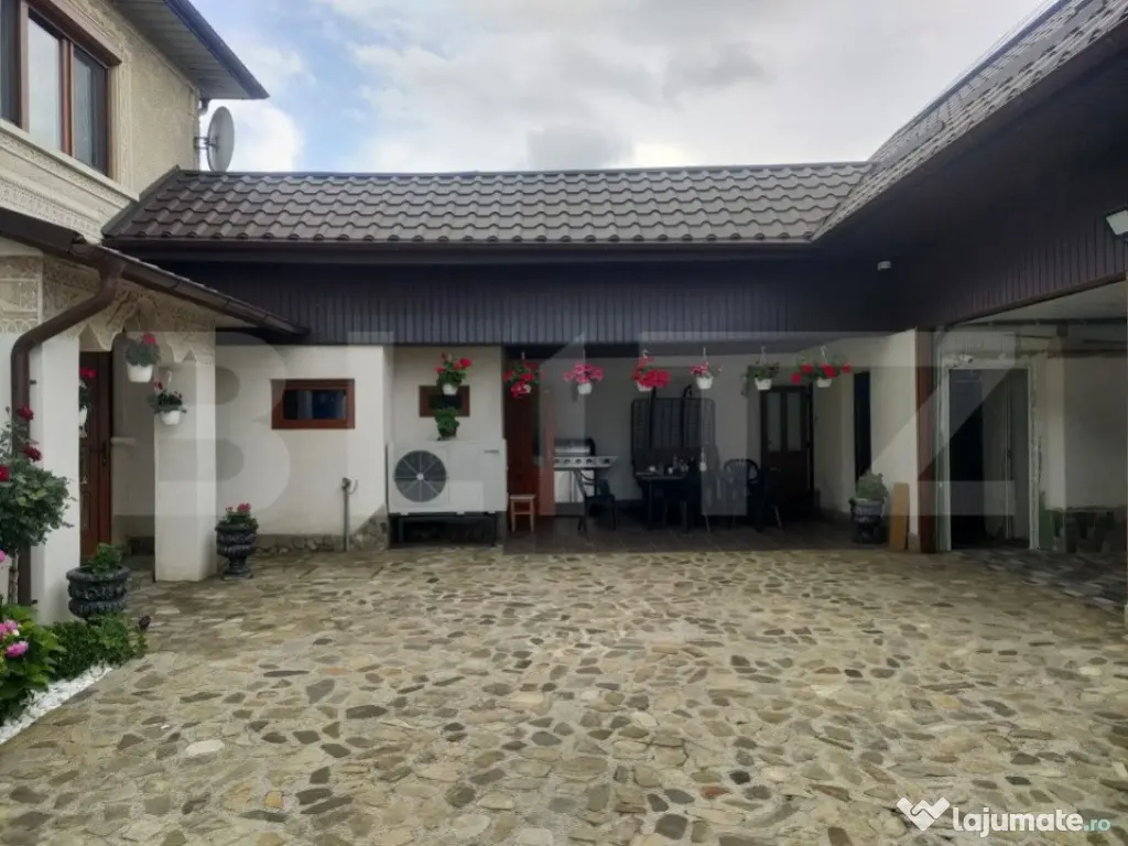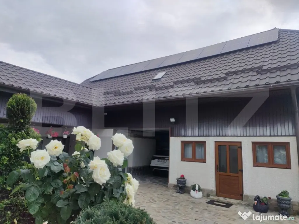 Blitz va ofera spre vânzare o casă exceptională cu o suprafata utila de 400 mp, dotată cu cele mai noi tehnologii și finisaje premium: Panouri fotovoltaice 8,5 kw: Produci propria energie electrică, economisești bani și contribui la un mediu mai curat. Panouri solare pentru apa caldă: Ai apă caldă gratuit de la soare, reducând semnificativ costurile de energie. Fosă septică și fântână: Independență totală de la rețelele publice de apă și canalizare. Centrala electrică aer-apă Hyundai: Încălzire și răcire eficiente, adaptate nevoilor tale. Centrala pe lemne: O alternativă suplimentară de încălzire, perfectă pentru zilele friguroase. Generator: Niciodată nu vei rămâne fără curent electric! Garaj cu ușă automată: Parchezi mașina în siguranță și confortabil. Porți la intrare automate: Acces facil pe proprietate. Proprietate supravegheată video: Securitate 24/7 pentru tine și familia ta. Curtea cu piatră de râu: Un spațiu exterior elegant și relaxant. Casa este compartimentată astfel: Parter cu incălzire în pardoseală: Hol Debara Camera centralei Bucătărie spațioasă și modernă Living generos Baie 1 dormitor Etaj 1: Hol Baie Living 2 dormitoare Balcon Mansardă: 1 dormitor mare Casa a fost construită cu materiale de cea mai bună calitate și este complet mobilată și utilată. Lângă casă se mai află: O bucătărie de vară O baie de serviciu O magazie mare Nu ratați această ocazie unică de a achiziționa o casă excepțională! Contactați-ne pentru a programa o vizionare! Cod ofertă / ID BLITZ: P127740 Id intern: P127740 Număr niveluri imobil: 2 Număr Băi: 2 Nr. locuri parcare: 1 Curent Climă