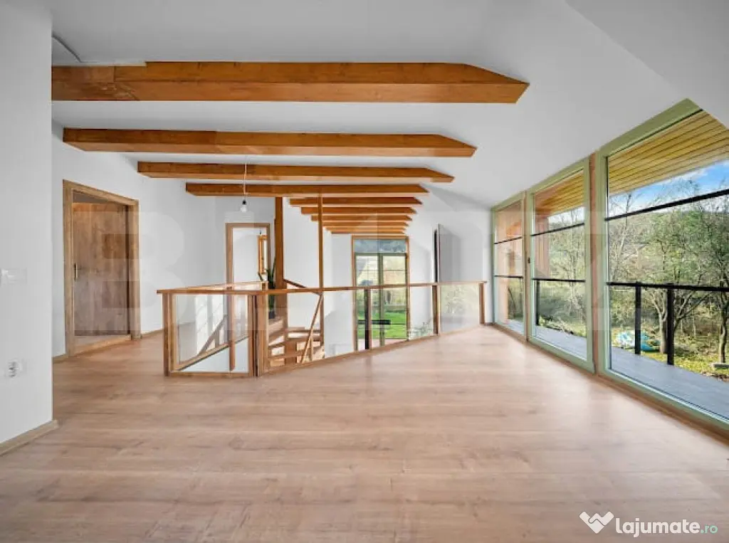 Etajul oferă spațiu privat generos, ideal pentru familie sau pentru amenajarea unui home office.