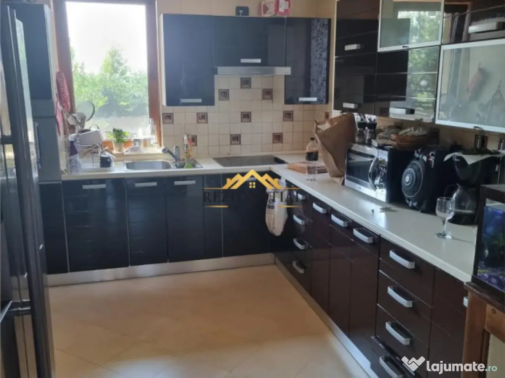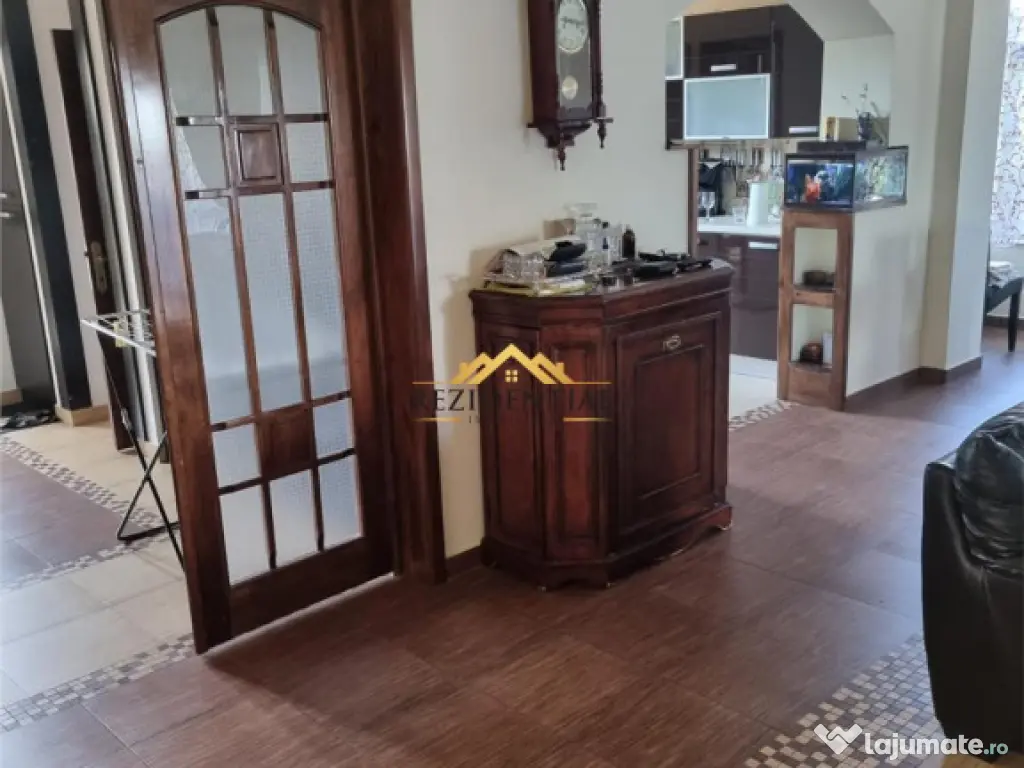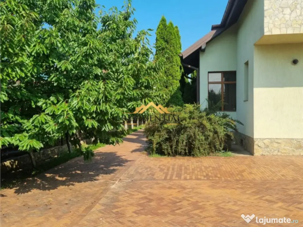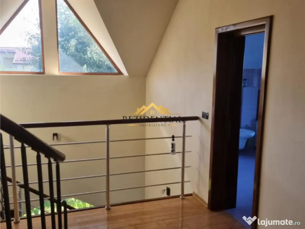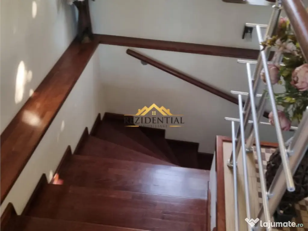 Casa este compartimentata astfel: - DEMISOL: crama, sala de sport, sauna si dus; - PARTER: living, birou, bucatarie, dining room, baie, camera tehnica, spatiu depozitare; - ETAJ: 3 dormitoare, fiecare cu dressing, baie cu suprafata de 20 mp; - MANSARDA: 2 camere (loc de joaca si spatiu depozitare). Incalzirea casei se face prin pardoseala si calorifere, cu centrala electrica. Pe proprietate se afla garaj cu beci si foisor cu gratar. Terenul aferent casei are suprafata de 700 mp.