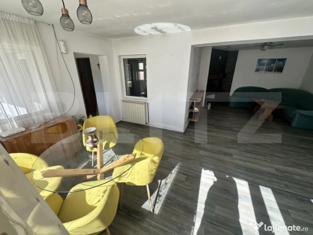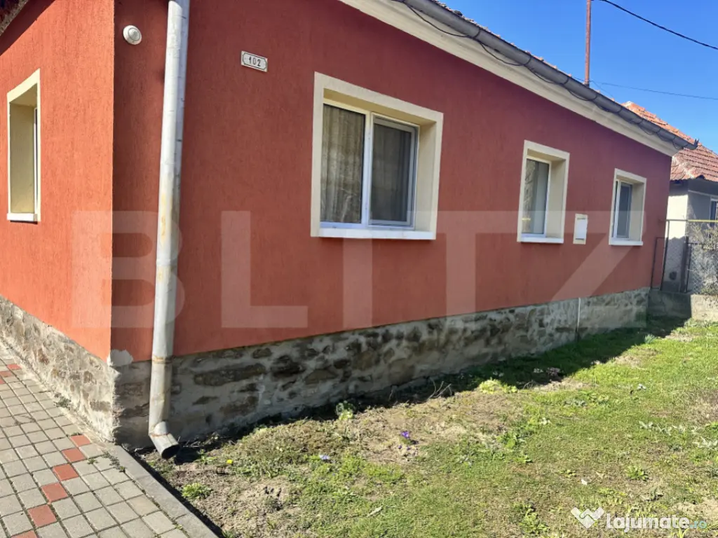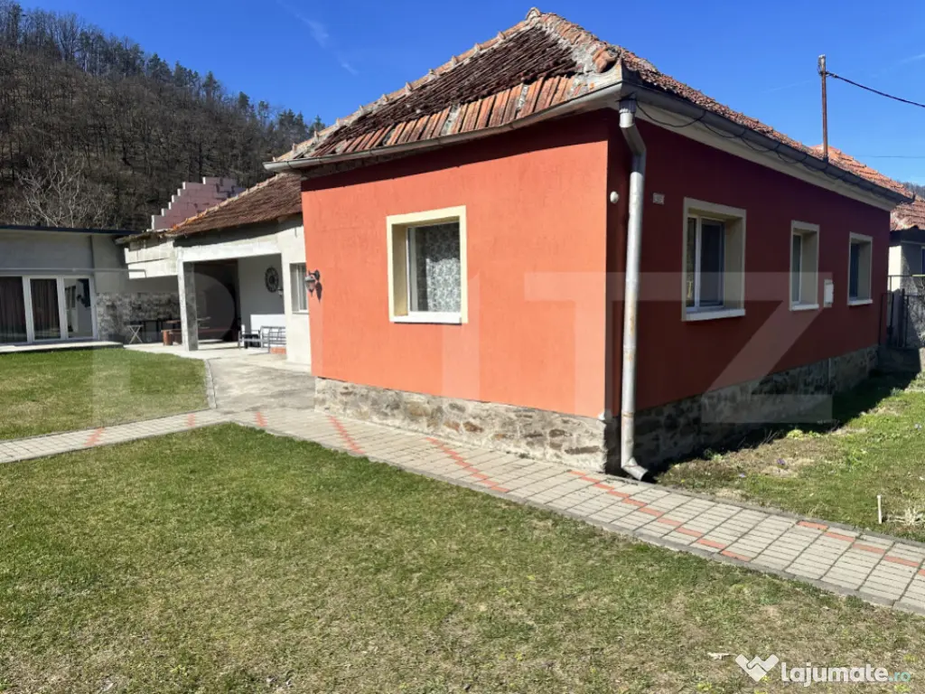 Blitz vă propune spre vânzare, în exclusivitate, o proprietate deosebită situată în localitatea Lesnic, la doar 15 minute de Deva, ideală atât pentru locuință permanentă, cât și pentru casă de vacanță. Casa este compartimentată practic și dispune de două dormitoare, un living luminos, bucătărie și baie, oferind un spațiu confortabil pentru întreaga familie, iar la etaj se află un pod cu posibilitate de mansardare, oferind multiple opțiuni de extindere. Proprietatea impresionează prin curtea foarte generoasă și amenajată, unde regăsim un garaj, o piscină și un salon superb de aproximativ 38 mp. Acest spațiu este compus din living, bucătărie și baie. Salonul este foarte bine vitrat cu geamuri termopan, oferind o priveliște superbă spre curte și piscină și multă lumină naturală. În plus, proprietatea beneficiază de un teren intravilan în suprafață de 3.298 mp și dispune de toate utilitățile necesare. O proprietate ideală pentru cei care își doresc liniște, spațiu generos și confort, într-o zonă accesibilă, aproape de oraș. Cod ofertă / ID BLITZ: P166562 Id intern: P166562 Număr Băi: 2 Curent Apă Canalizare Gaz Sistem irigaţie