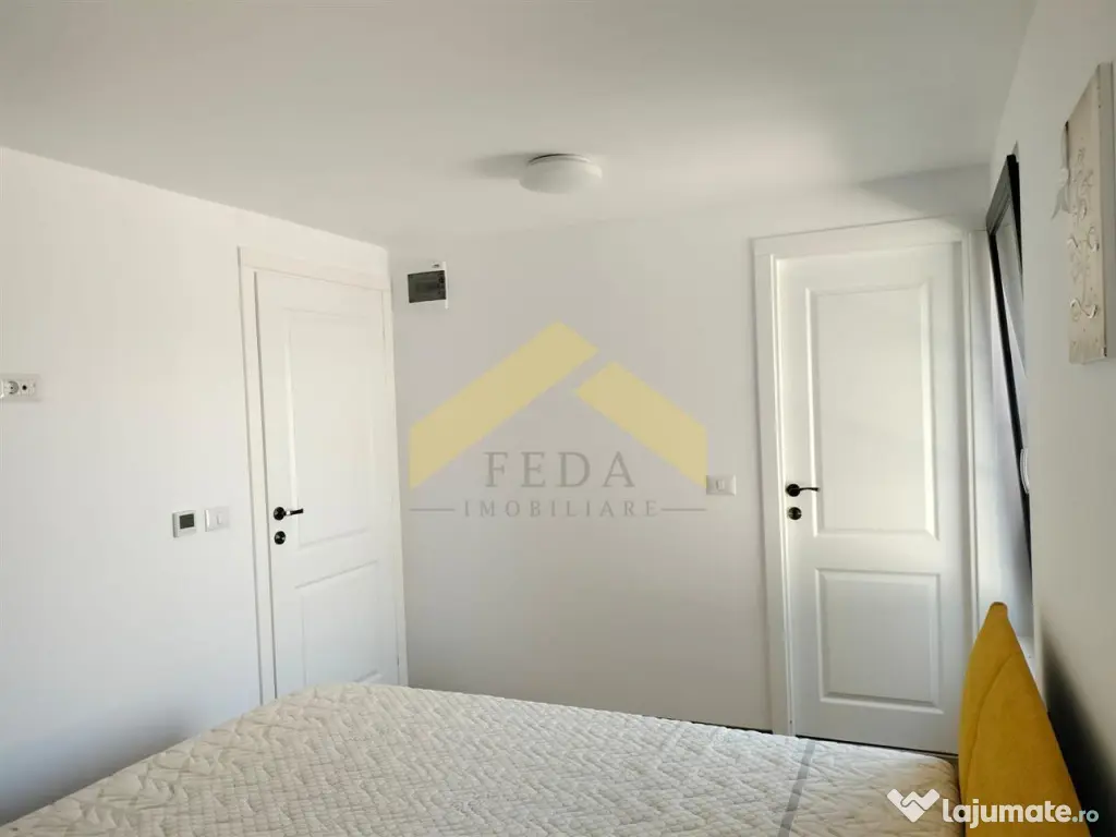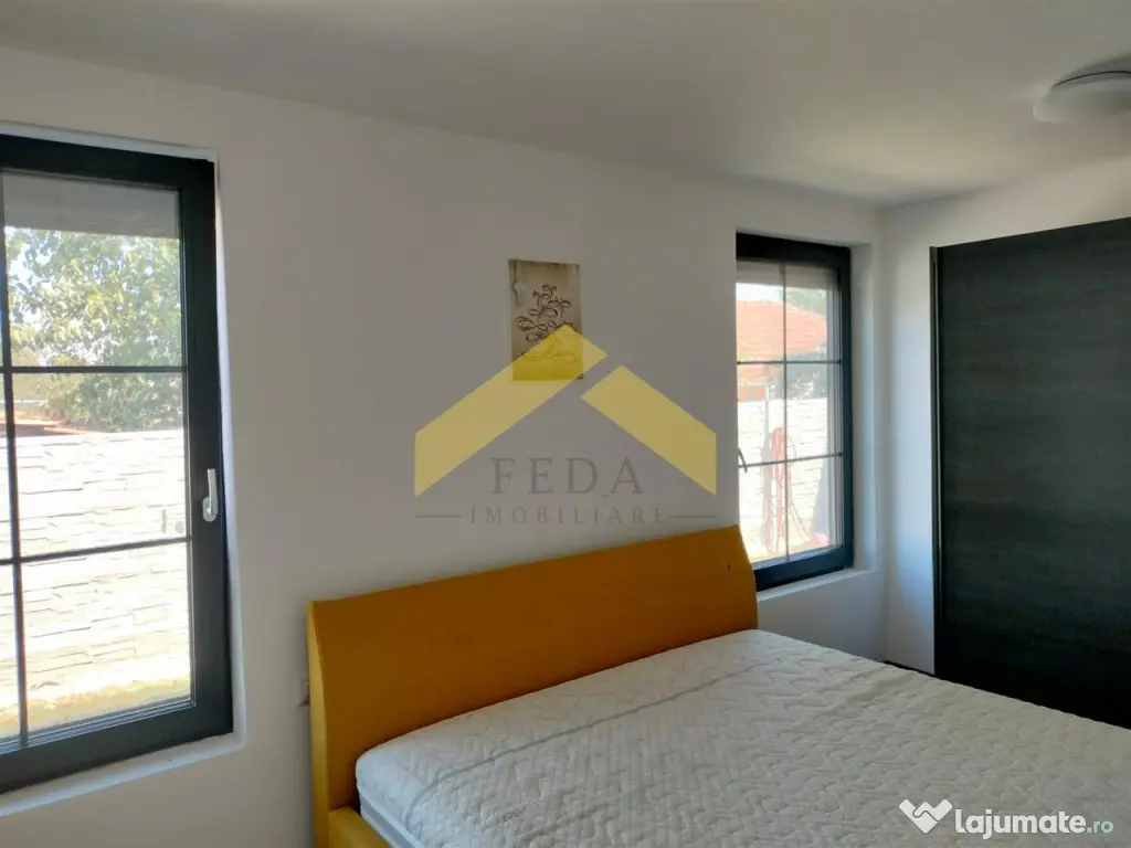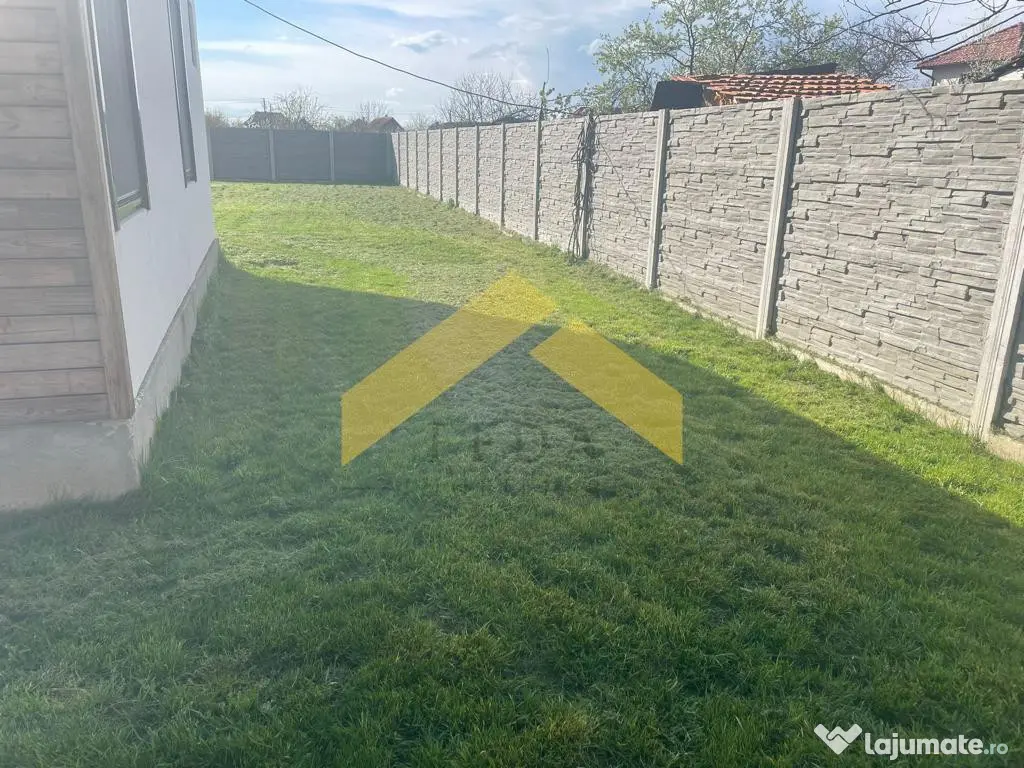 Feda Imobiliare va propune spre vanzare o casa Modulara cu 3 camere, in localitatea Frumuseni, Arad.Daca iti doresti o casa ferita de agitatia urbana dar in acelasi timp sa fie la numai cateva minute de oras, noi avem propunerea potrivita pentru tine, aceasta casa din Frumuseni este la doar 20 de minute de Arad.Casa este situata pe un teren de 955 mp cu un front stradal de 27 ml, suprafata construita 80 mp si utila de 65 mp.Este compusa din: living open space cu bucataria (cu iesire pe terasa acoperita), 2 dormitoare (fiecare cu baie proprie), in curte mai este o terasa din lemn acoperita de 30 mp.Dotari:- gard din aluminiu cu poarta electrica- rolete electrice la geamuri- incalzire in pardoseala- clima- complet mobilata si utilata- gazon ingrijit- izolata pe exterior cu ampora si pe interior cu rigipsUtilitati:- fantana forata- sistem irigatie ambiental- centrala termica pe curent- fosa septica- curent,apa, internetAceasta proprietate merita vizionata deoarece este casa viitorului.Felix - Feda Imobiliare
