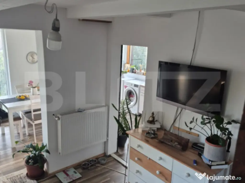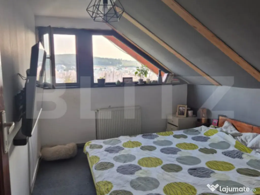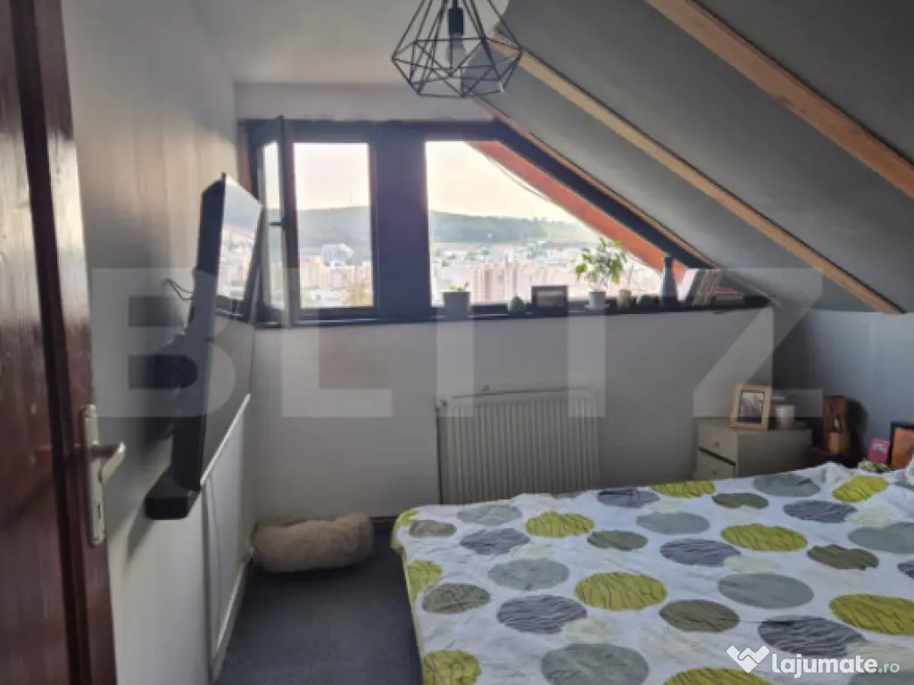 Blitz imobiliare va ofera la vanzare o casa situata in cartierul Tudor Vladimirescu, pe strada Negoiului. Casa este construita din lemn cu izolatie esterioara si este compusa din parter si mansarda. La parter gasim un living cu bucatarie open space, o baie si hol acces iar la mansarda avem doua dormitoare, un balcon si un spatiu care poate fi amenajat in baie. Privelistea este panoramica, casa este ideala pentru persoanele care doresc accesul la toate facilitatile orasului dar si liniste si o priveliste de vis. Accesul la casa se face pe o poteca privata iar parcarea se face pe strada Negoiului la mica distanta de proprietate. Pentru cei interesati sa aiba acces direct cu masina in curte se poate cumpara drept de servitute auto de la vecin. Va asteptam la vizionare! Cod ofertă / ID BLITZ: P152863 Id intern: P152863 Număr niveluri imobil: 1 Număr Băi: 1 Curent Apă Canalizare Gaz