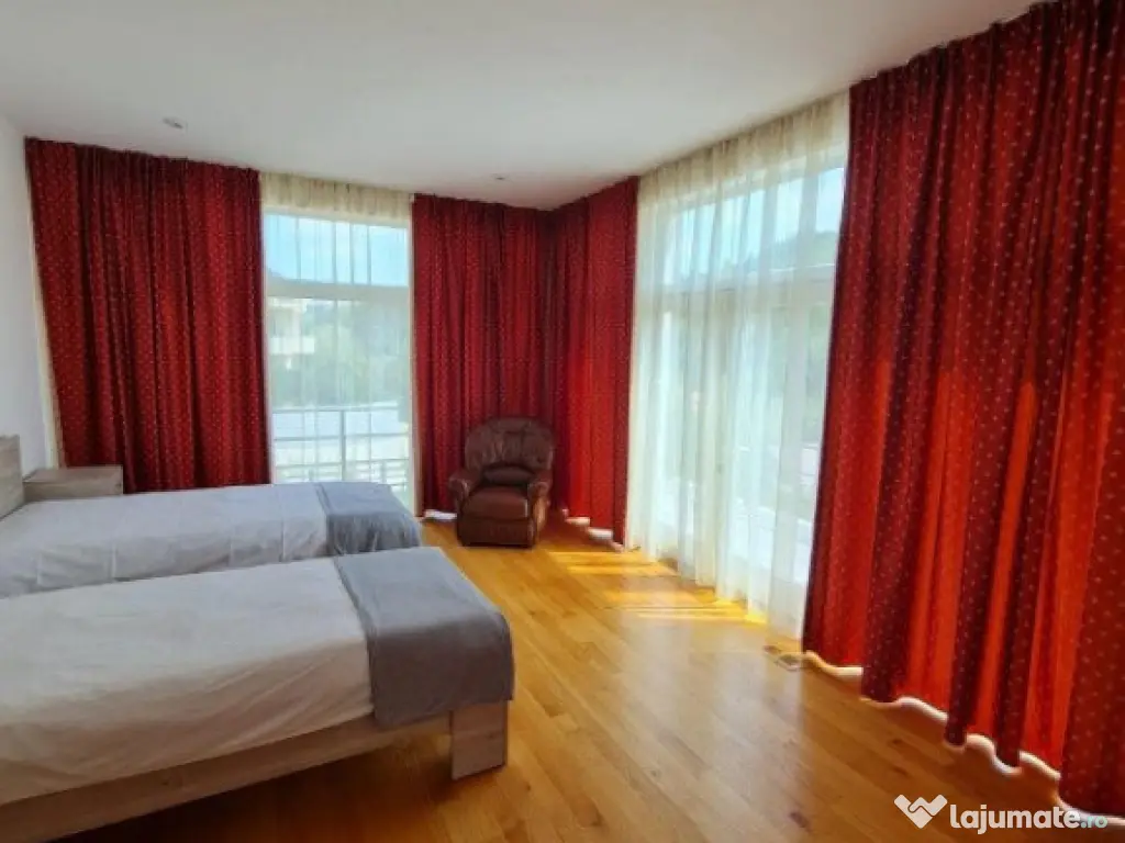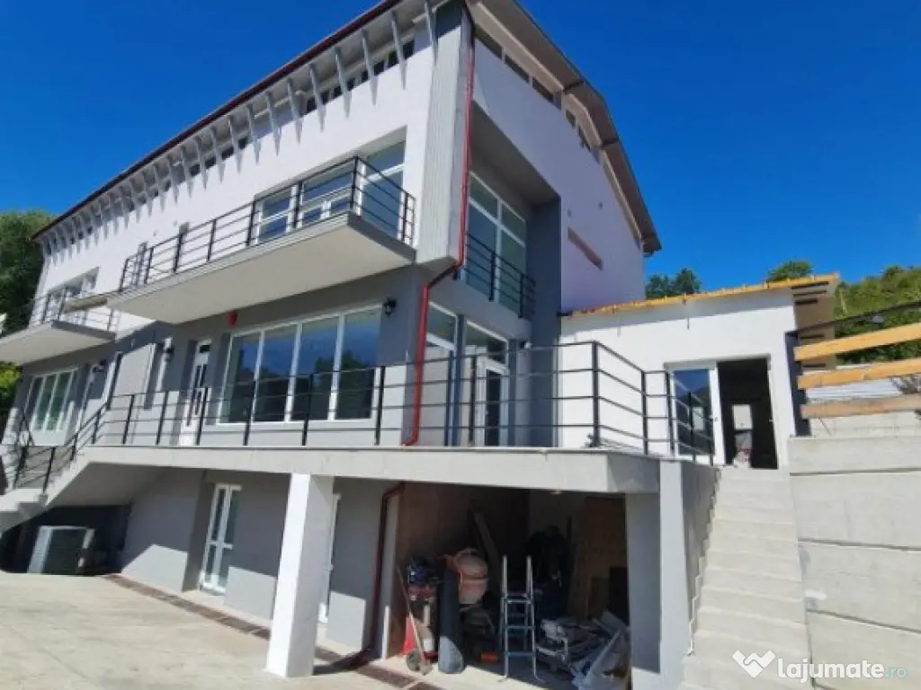 De vanzare casa cu 8 camere si 650 mp de teren. Aceasta se afla situata la intrarea in localitatea Tauti, este construita din caramida, dispusa pe 4 niveluri si compartimentata astfel: Demisol; garaj, camera tehnica, bucatarie, spalatorie, camera tehnica, grup sanitar. Parter; living cu bucatarie, camera de oaspeti, dressing, baie si o terasa de 40 mp. Etaj; 3 dormitoare, 2 bai si o terasa de 12 mp. Mansarda; 3 dormitoare, 2 cu dressing, 3 bai si o camera hobby. Imobilul a fost recent renovat si dispune de cantrala termica proprie, precum si tamplarie PVC cu geam termopan. Pentru cei interesati exista si posibilitatea achizitionarii imobilului alipit. Cod ofertă / ID BLITZ: P2921 Id intern: P2921 Număr niveluri imobil: 2 Număr Băi: 7 Nr. locuri parcare: 4
