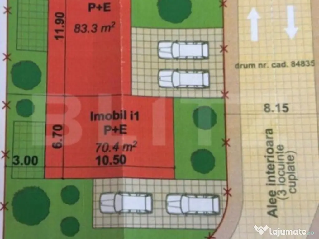Blitz ofera spre vanzare case cuplate cu predare la stadiul de semifinisat , atent si armonios pozitionate intr-un cartier privat in zona Terra. Numarul total de unitati locative este de 30 case si au un regim de inaltime P + E. Locatia este una retrasa, linistita, si in acelas timp in apropierea tuturor facilitatilor: magazine, cresa / gradinita, statie de bus, farmacie, parc de joaca pentru copii. Casa are 110mp utili si teren de 110mp si are urmatoarea compartimentare Parter - hol acces, baie, bucatarie + dining, living, debara. Etaj - hol, trei dormitoare, doua bai una fiind matrimoniala si un balcon. Predarea se face la stadiul de semifinisat (cu posibilitate de finisare): cu centrala termica proprie si incalzire in pardoseala, tamplarie PVC cu geam termopan, usa intrarea PVC, pereti tencuiti si gletuiti si finisati. avand toate utilitatile pe pozitie, parchet, gresie si marmura. Exteriorul case se preda izolat termic, constructiile sunt din caramida si acoperite cu tabla. Terenul aferent caselor va fi delimitat cu gard si imprejmuit + amenajata o parcare. Utilitati: apa, gaz, curent, canalizare. In pretul afisat este TVA INCLUS. Cod ofertă / ID BLITZ: P132523 Id intern: P132523 Număr niveluri imobil: 1 Număr Băi: 3 Nr. locuri parcare: 2 Curent Apă Canalizare Gaz