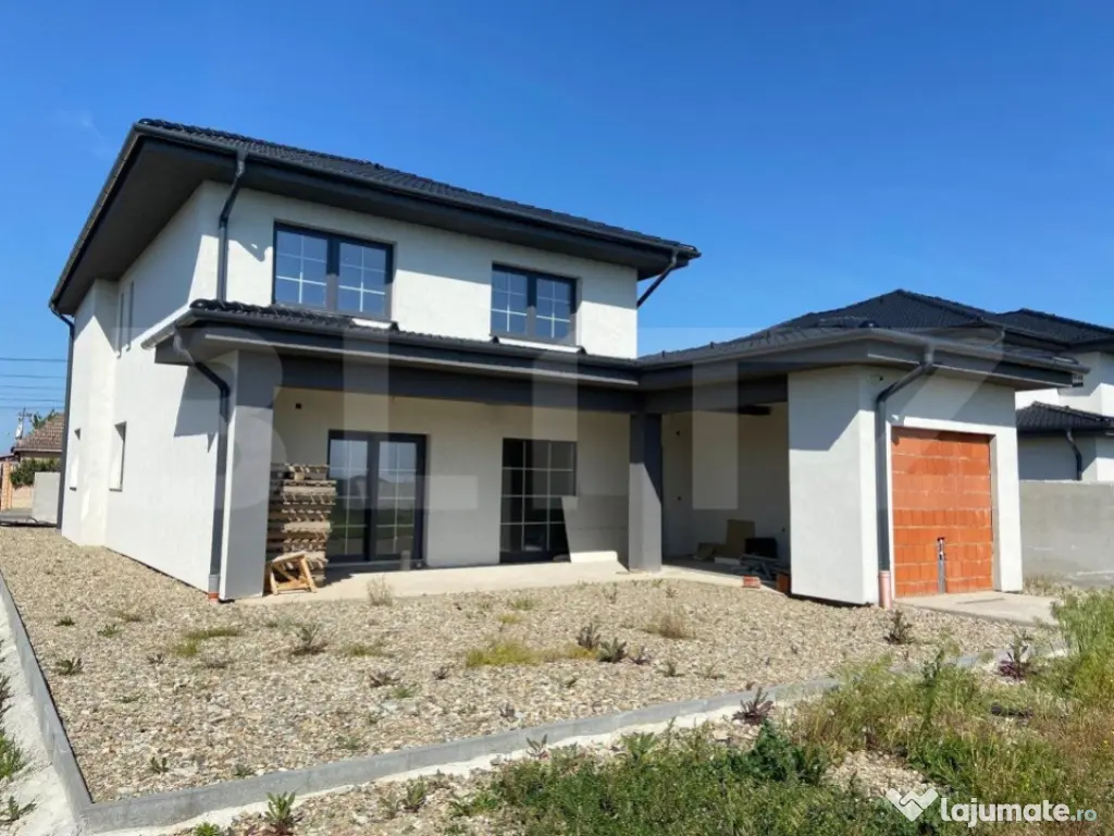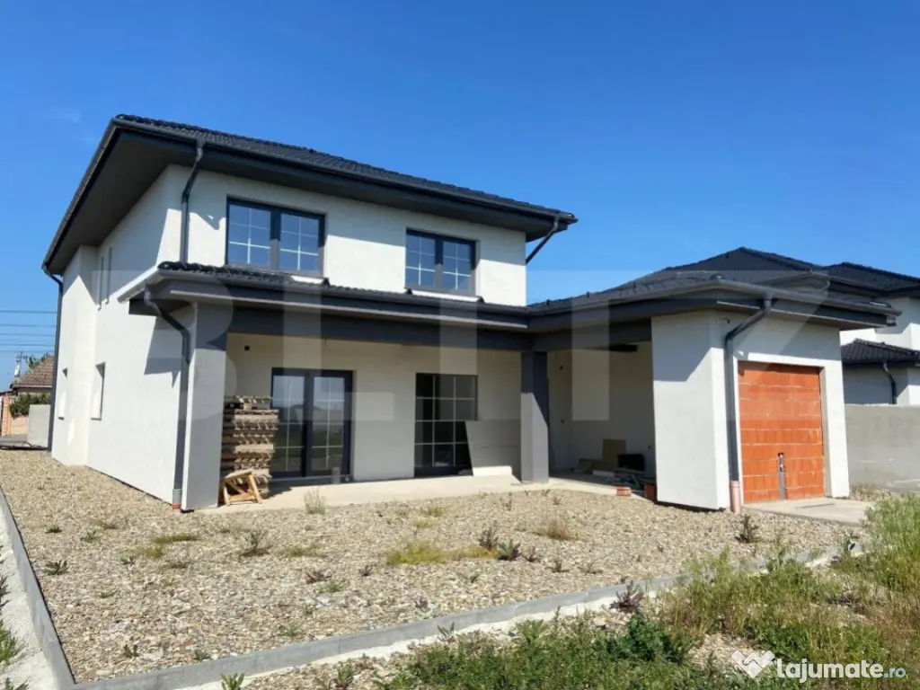 BLITZ va propune spre achiziționare casa P+1E de 300mp construiți, pe un teren de 850mp. Casa este bine compartimentata: la parter are un living cu bucătărie open-space, baie, camera tehnica și garaj, iar la etaj sunt trei dormitoare, doua bai și doua dressing. Imobilul este racordat la toate utilitățile: apa, canalizare, curent electric, fibra optica. Pe langa acestea, pe teren mai exista un put forat și camere de filmat. Încălzirea este realizată în pardoseala. Curtea este împrejmuită cu gard de cărămidă tencuit. În gard sunt prevăzute luminatoare electrice, iar poarta este confecționată din fier, dar încă nu este montata. Pretul afisat este pentru starea actuala. Cod ofertă / ID BLITZ: P9479 Id intern: P9479 Număr niveluri imobil: 1 Număr Băi: 3 Nr. locuri parcare: 2