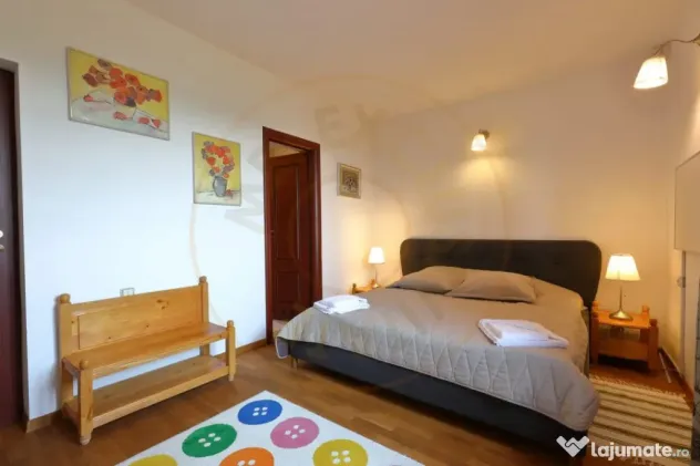 Cu potențialul său extins, proprietatea poate fi valorificată prin amenajarea spațiului de la parterul casei, în diverse moduri creative: un pub, o cafenea, o crama, o sală de sport și multe altele. Casa se vinde complet mobilată și utilată, așteptând cu nerăbdare discuții și posibilități de investiție îndrăznețe.