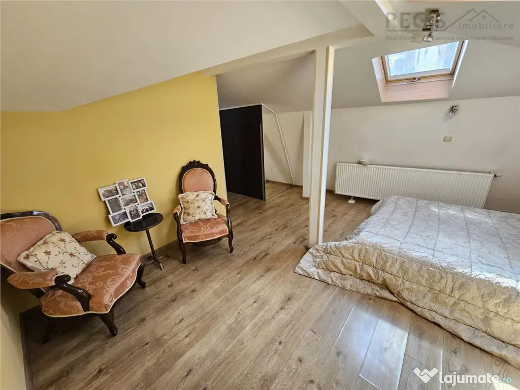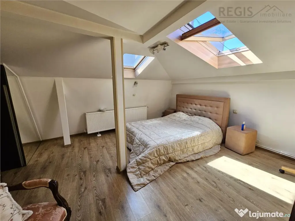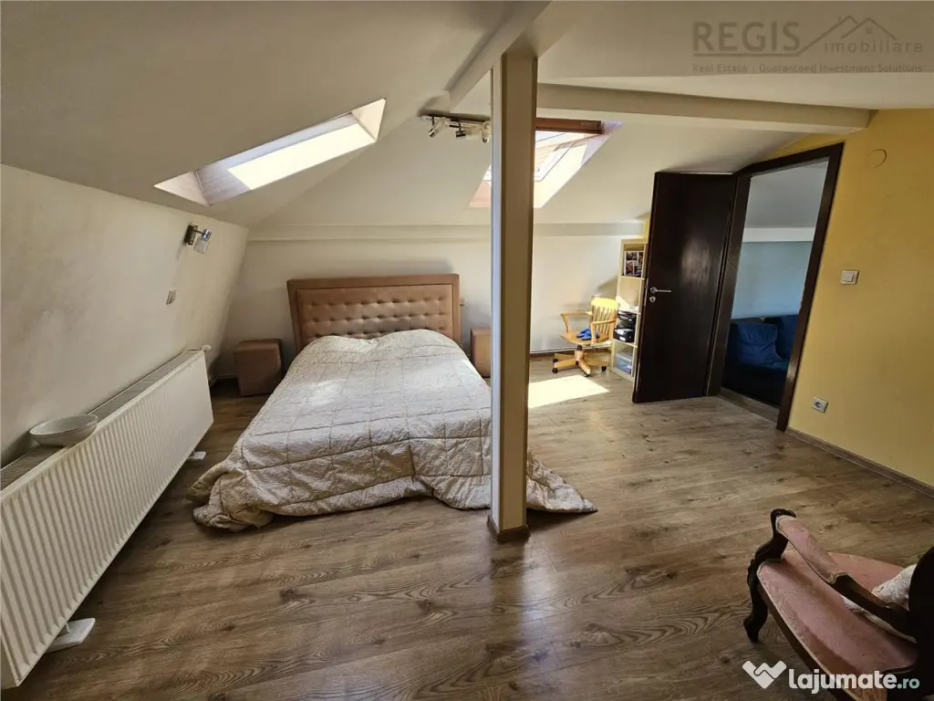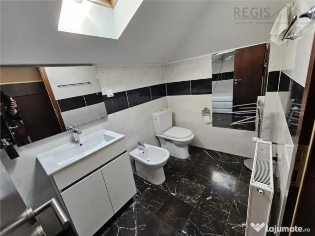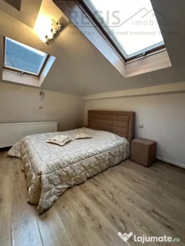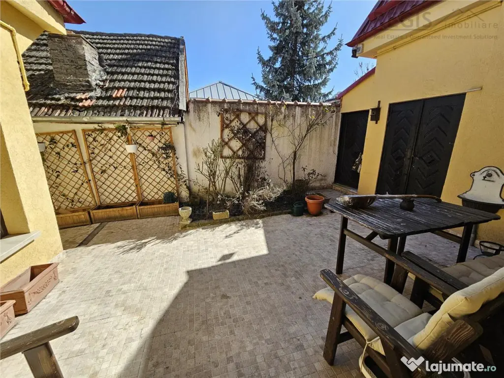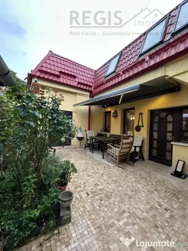 Curte: 60 mp, intima, pavata cu travertin, pergola retractabila pentru luat masa, spatiu verde cu flori