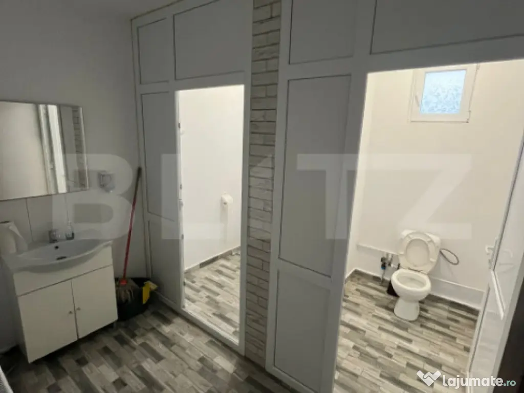 Blitz vă oferă spre închiriere casă cu suprafața utilă de 105 mp, potrivită pentru birouri, salon, cabinet, after-school sau alte activități comerciale, dar si pentru locuit. Compartimentare: Parter: -salon mare, open space, luminos -o cameră separată -o cameră cu două toalete Etaj: -o cameră spațioasă, ideală pentru birou, sală de ședințe sau activitate individuală -Imobilul are finisaje moderne, spații bine luminate și ușor de adaptat în funcție de necesități. Suprafață utilă totală: 105 mp Cod ofertă / ID BLITZ: P162433 Id intern: P162433 Număr Băi: 2 Curent Apă