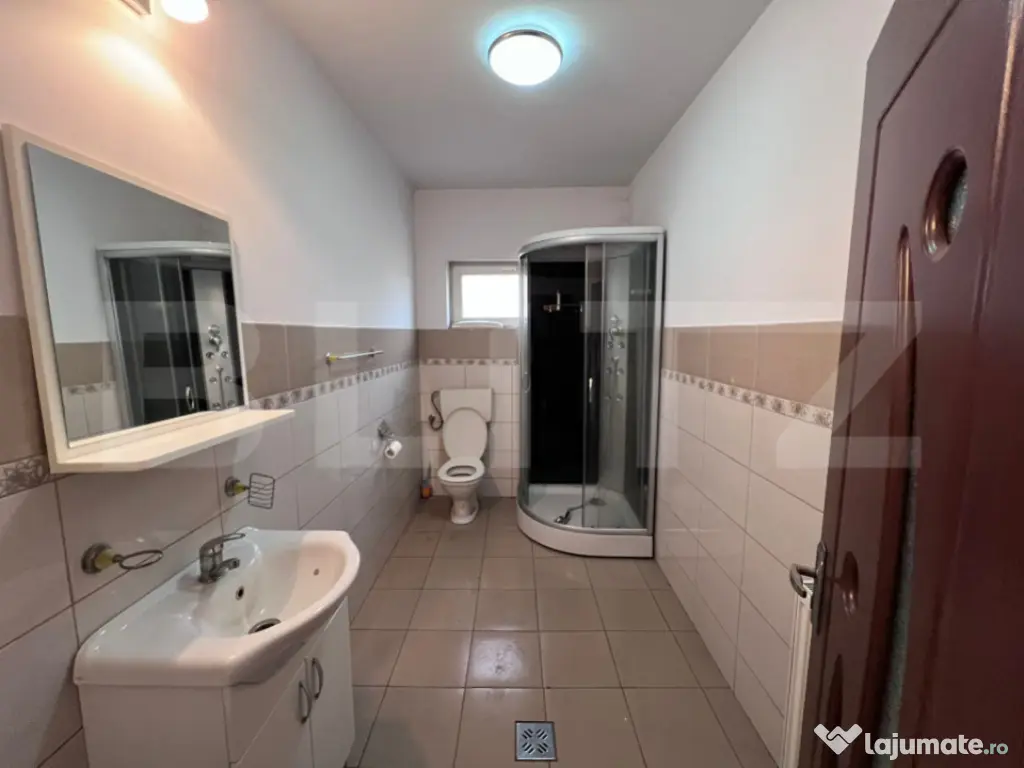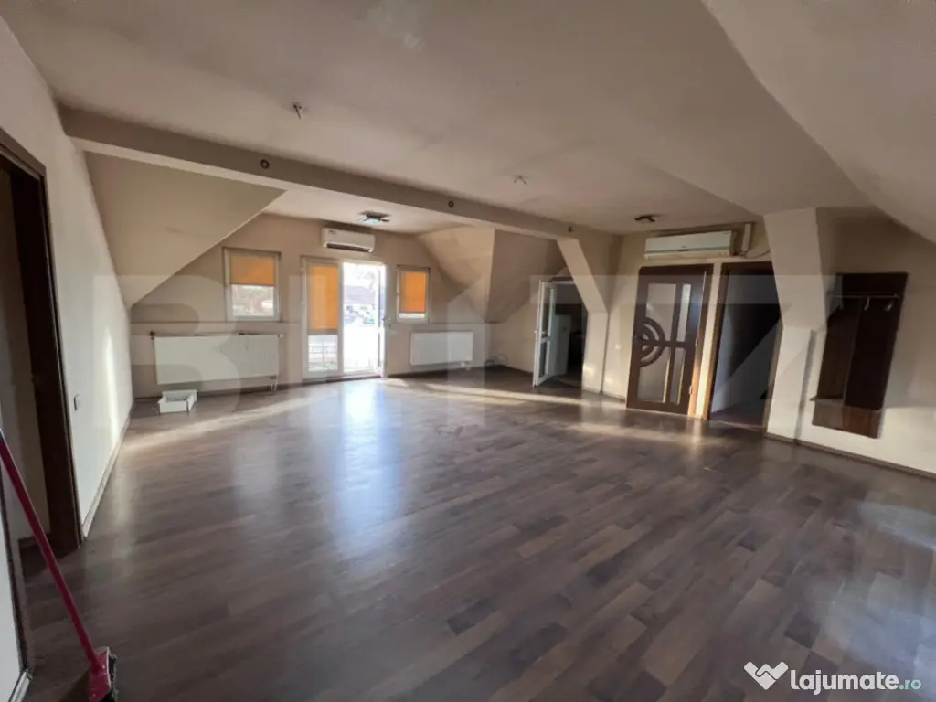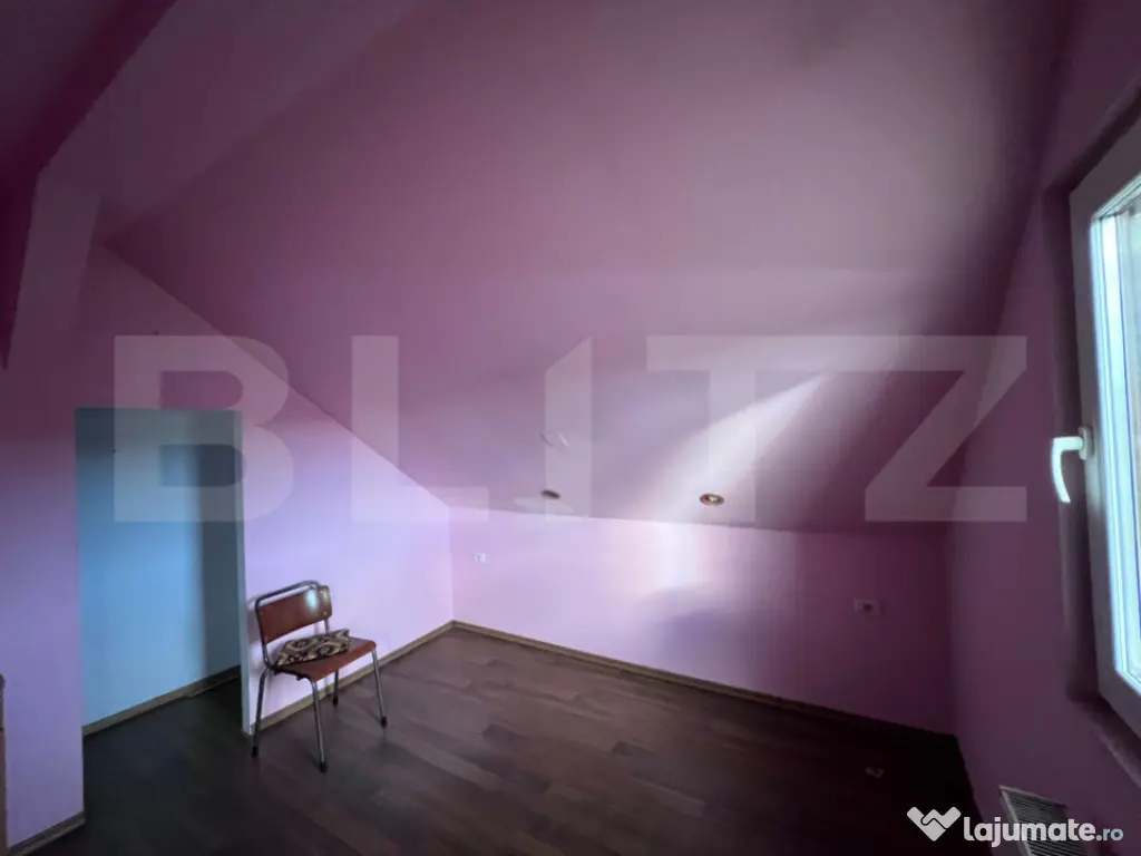 Casă de închiriat – spațiu generos, ideal pentru sediu de firmă sau activități comerciale BLITZ vă propune spre închiriere o proprietate spațioasă, cu vizibilitate foarte bună și poziționare excelentă, ideală pentru sediu de firmă, birouri, clinică, centru educațional sau alte activități comerciale. Imobilul are o suprafață utilă de 345 mp, cu amprentă la sol de 115 mp, fiind amplasat pe un teren generos de 1.342 mp, cu un front stradal impresionant de 78 m. Proprietatea beneficiază de ieșire directă la drumul principal și acces către râu, oferind expunere excelentă și acces facil pentru clienți sau angajați. Casa este structurată pe demisol, parter și mansardă și dispune de 11 camere, compartimentate astfel: 4 camere la demisol 4 camere la parter 3 camere la mansardă De asemenea, imobilul are 3 băi și 2 balcoane, oferind spațiu suficient pentru organizarea eficientă a birourilor sau a diferitelor zone de lucru. Construcția este realizată pe structură de beton, cu partea superioară din lemn, izolată cu vată de 15 cm și acoperită cu șindrilă bituminoasă. Proprietatea este dotată cu centrală termică proprie și beneficiază de toate utilitățile: gaz, curent electric, apă și canalizare. Imobilul a fost utilizat anterior ca sediu de firmă, fiind deja adaptat pentru activități profesionale și putând fi folosit imediat pentru birouri, clinică, cabinet, sediu companie, afterschool, pensiune sau alte activități comerciale. Proprietatea oferă spațiu generos, acces facil și vizibilitate excelentă, fiind o alegere potrivită pentru dezvoltarea unei afaceri. Pentru mai multe informații sau programarea unei vizionări, vă stau cu plăcere la dispoziție. Cod ofertă / ID BLITZ: P167033 Id intern: P167033 Număr niveluri imobil: 1 Număr Băi: 3 Curent Apă Canalizare Gaz Climă