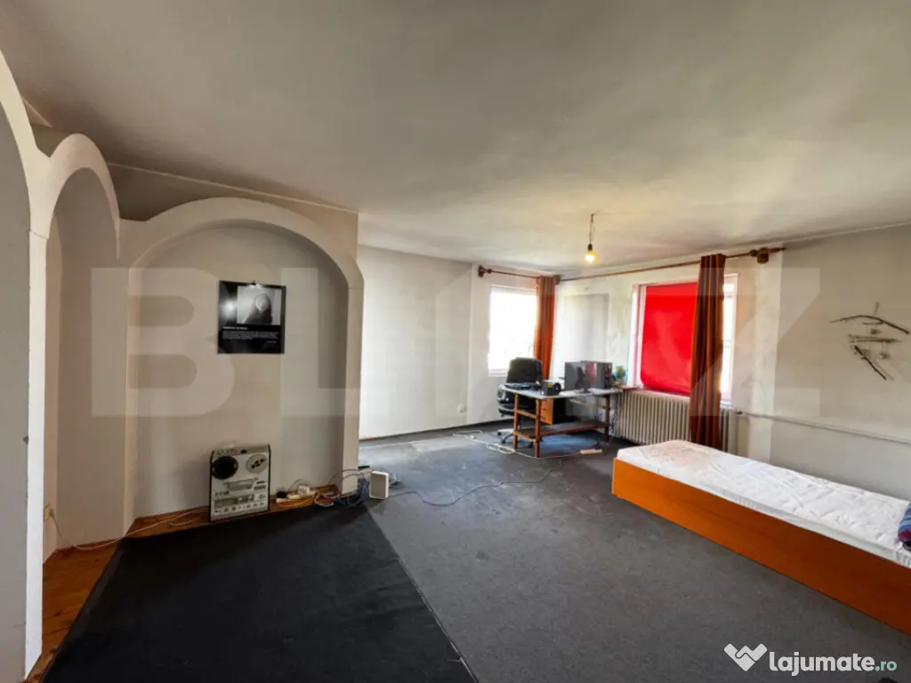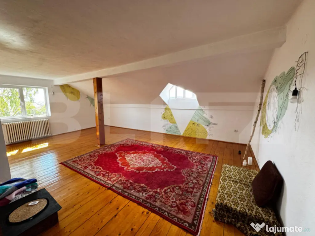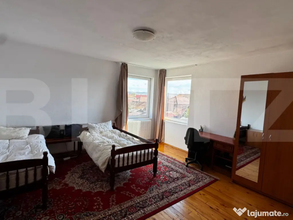 Blitz vă propune spre închiriere o proprietate deosebită, versatilă și generoasă ca spațiu, situată într-o zonă liniștită, dar ultracentrală, la doar 300 m de centrul vechi al orașului. Datorită compartimentării eficiente și accesului facil, proprietatea este potrivită atât pentru locuință, cât și pentru sediu de firmă, birouri, clinică, cabinet sau alte activități comerciale. Casa este dispusă pe demisol, parter, etaj și mansardă și oferă spații generoase, bine compartimentate. Compartimentare 8 camere spațioase (15–30 mp) 3 băi mari (aprox. 12 mp fiecare), câte una pe nivel 2 bucătării complet echipate living, sufragerie și hol central de 20 mp cu scară interioară 2 balcoane (unul închis) terasă de 35 mp, parțial acoperită, cu acces direct în grădină Spații exterioare și anexe curte privată cu zonă verde generoasă 2 pivnițe și cameră tehnică dependințe ce pot fi transformate în birouri, depozite sau camere suplimentare 2 garaje închise și încălzite (3–4 mașini) 1 loc de parcare în curte Utilități și facilități apă, canalizare, energie electrică, gaz internet, cablu TV și telefon sistem pentru apă caldă menajeră cu eficiență energetică contorizare separată pentru spațiul comercial Spațiu comercial inclus Proprietatea include spațiu comercial de 55 mp, cu acces direct din stradă și din curte, utilități proprii și contorizare separată – ideal pentru magazin, birou, cabinet, atelier sau showroom. Avantaje ✔ locație ultracentrală ✔ spațiu mare și compartimentare flexibilă ✔ potrivită pentru locuință sau business ✔ spațiu comercial separat ✔ curte privată și locuri de parcare Proprietatea este ideală pentru companii, clinici, firme sau pentru cei care își doresc o locuință spațioasă într-o zonă centrală premium. Cod ofertă / ID BLITZ: P166465 Id intern: P166465 Număr niveluri imobil: 2 Număr Băi: 3 Nr. locuri parcare: 2 Curent Apă Canalizare Gaz Climă
