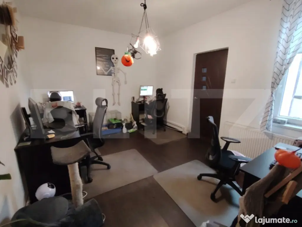 Blitz vă propune spre închiriere o casă în zona centrală rezidențială a Craiovei, disponibilă începând cu data de 1 ianuarie 2026. Casa are o suprafață utilă de 87 mp, este izolata termic si oferă 3 camere de birouri, 2 holuri, 2 băi, bucătărie mobilată și utilată și o curte frumos amenajată cu zonă verde și loc de luat masa. Dispune de centrală termică pe gaz și 2 AC-uri. Imobilul este pretabil pentru birouri de contabilitate, arhitectură, avocatură etc. Pentru mai multe detalii si vizionare, vă așteptăm să ne contactați. Cod ofertă / ID BLITZ: P157281 Id intern: P157281 Număr Băi: 2 Curent Apă Canalizare Gaz Climă