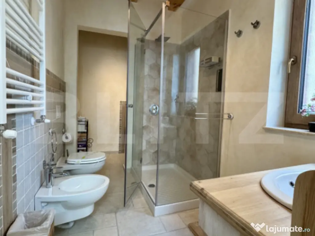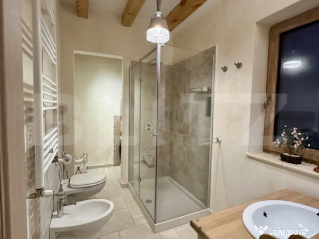 BLITZ vă propune spre închiriere două case identice, situate una lângă cealaltă, într-o zonă foarte căutată din Brașov – Coresi (Tractorul). Proprietățile se pot închiria separat, nefiind necesară închirierea ambelor. Prețul afișat este pentru fiecare casă în parte, iar una dintre locuințe beneficiază și de beci. Descoperiți confortul absolut într-o casă modernă, amenajată LUX, situată în apropiere de Coresi Shopping Resort, ideală pentru cei care apreciază calitatea, spațiul și liniștea, fără a renunța la avantajele urbane. ✨ Detalii care fac diferența: • 60 mp utili, compartimentare eficientă și aerisită • Living generos, perfect pentru relaxare și socializare • Bucătărie separată, complet mobilată • Cămară • Hol cu dressing • Baie la parter cu duș Etaj: • 3 camere luminoase • Dormitor matrimonial cu dressing • Baie • Hol • 2 terase + 1 balcon – ideale pentru momentele de relaxare ???? Finisaje premium & dotări smart: • Mobilier din lemn masiv periat și sculptat • Mobilier pictat manual, design unic • Încălzire în pardoseală – sistem smart • Video interfon smart • Construcție solidă, ziduri de 60 cm grosime – izolație excelentă și costuri reduse la utilități ???? Locație excelentă: Proprietatea este situată aproape de Coresi Shopping Resort, dar și de școli, restaurante, mijloace de transport și zone verzi. ???? O locuință LUX, gata să devină „acasă” pentru chiriași exigenți care caută calitate, stil și confort. ???? Comisionul agenției este de 50% + TVA din valoarea unei luni de chirie, TVA-ul aplicându-se comisionului. ???? Pentru mai multe detalii și programarea unei vizionări, vă stăm cu drag la dispoziție! Cod ofertă / ID BLITZ: P161680 Id intern: P161680 Număr Băi: 2