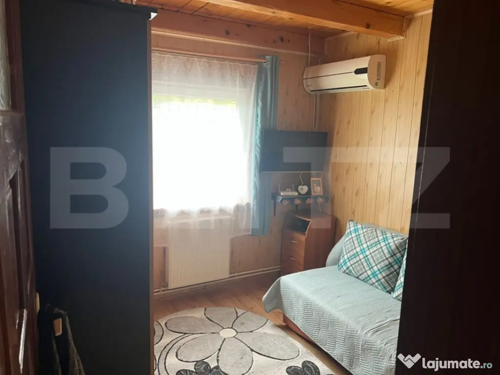 Casă de lemn situată în Cerghid, într-o zonă liniștită, verde și aerisită, ideală pentru cei care își doresc confort și natură în același loc.