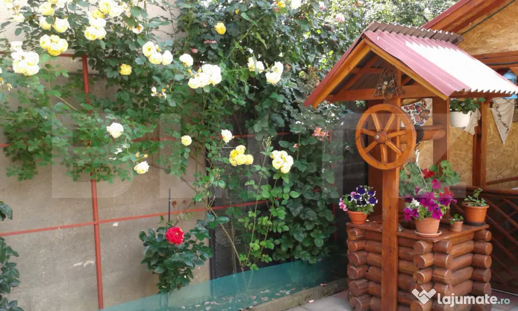 O terasa acoperita, o curte spatioasa cu o toaleta suplimentara la indemana. O parcare acoperita si o gradina frumoasa.